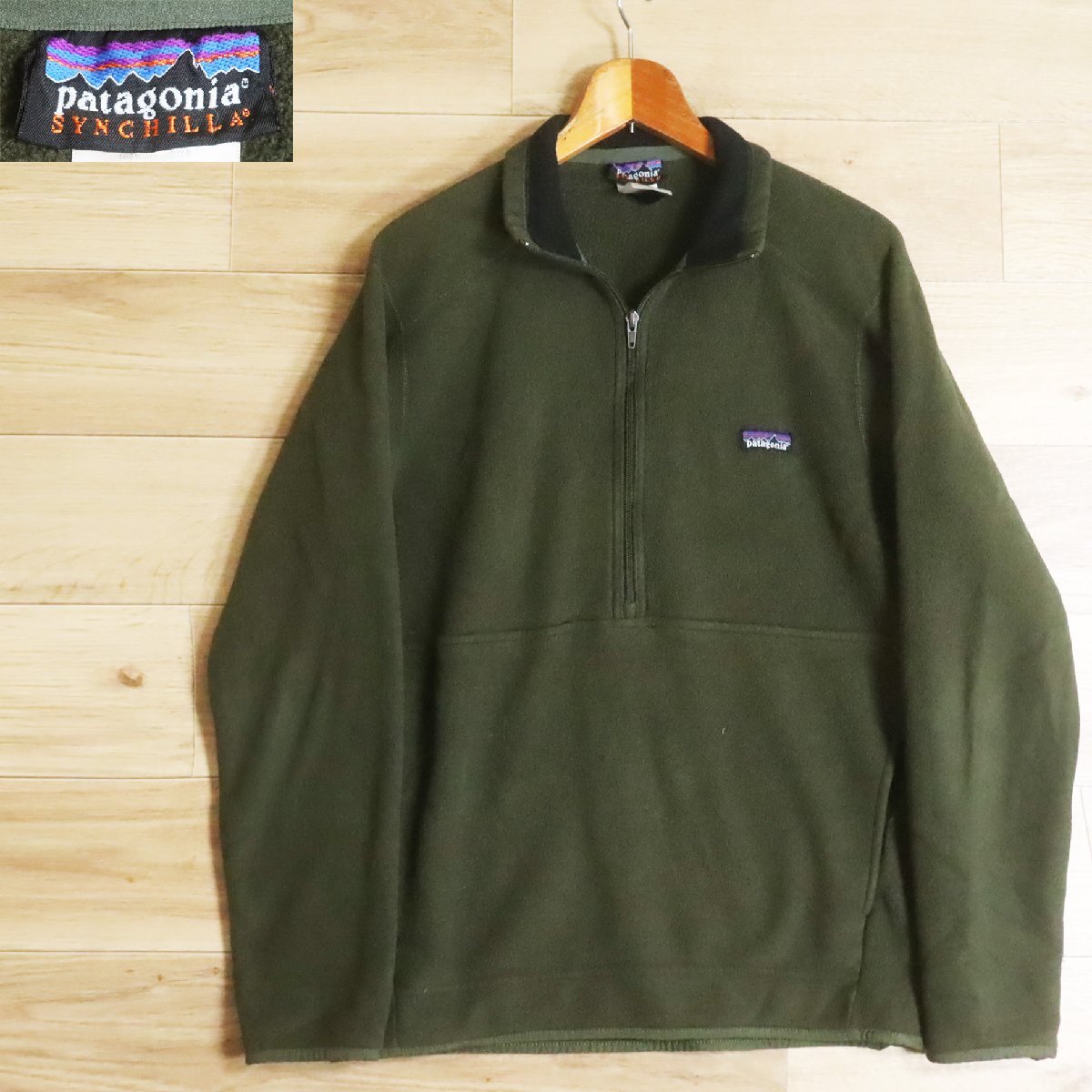 M12O/O5.2-5 patagonia SYNCHILLA パタゴニア シンチラ ハーフジップ フリースジャケット プルオーバー メンズ M グリーン系
