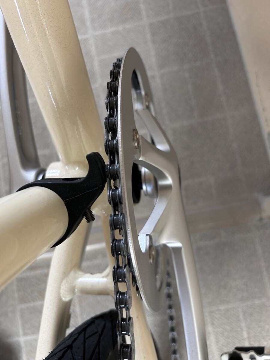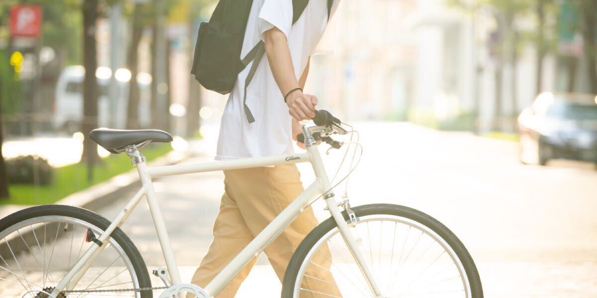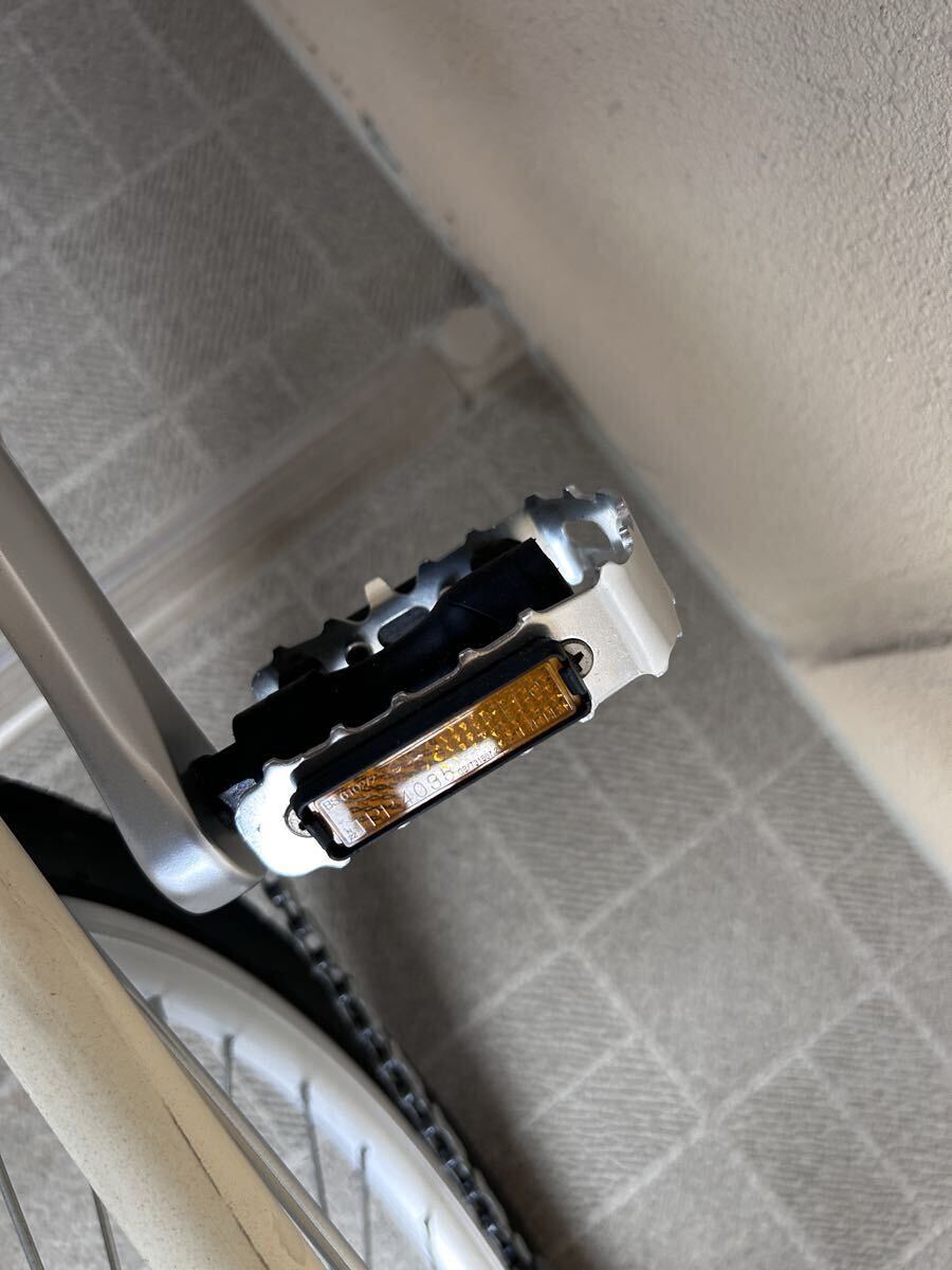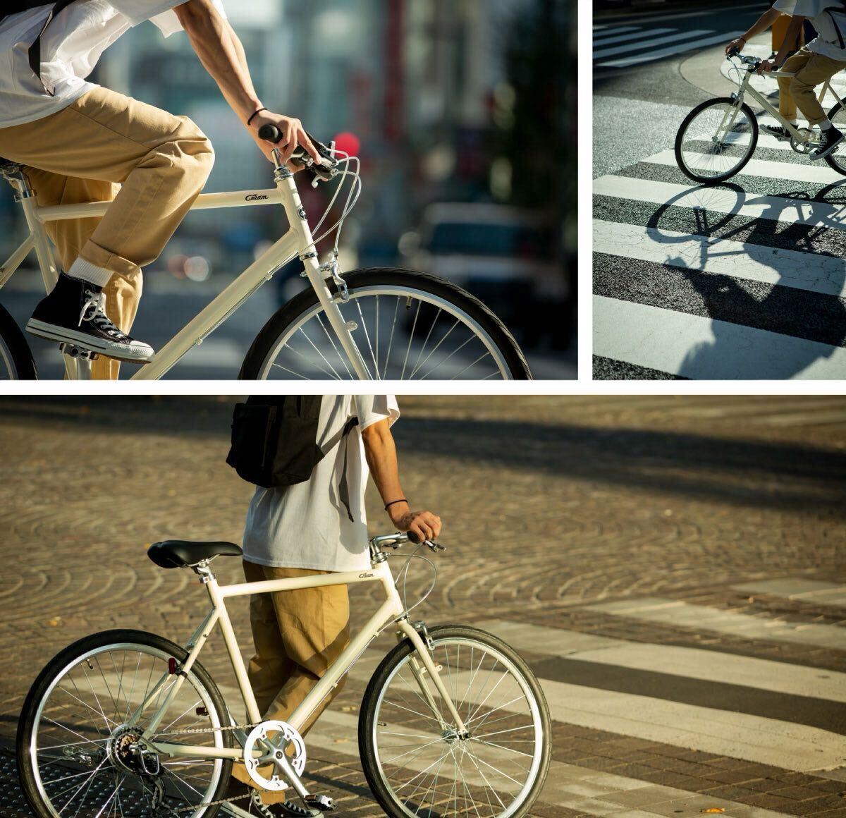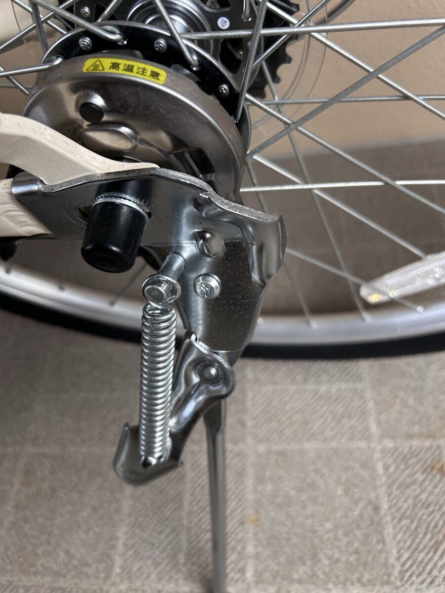 クリーム色のアルミフレーム、26インチタイヤ、7段変速、オートライトのクロスバイクです。