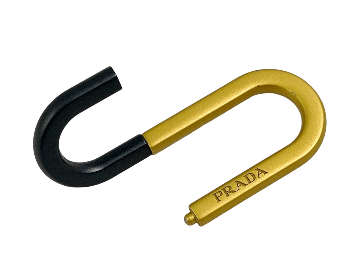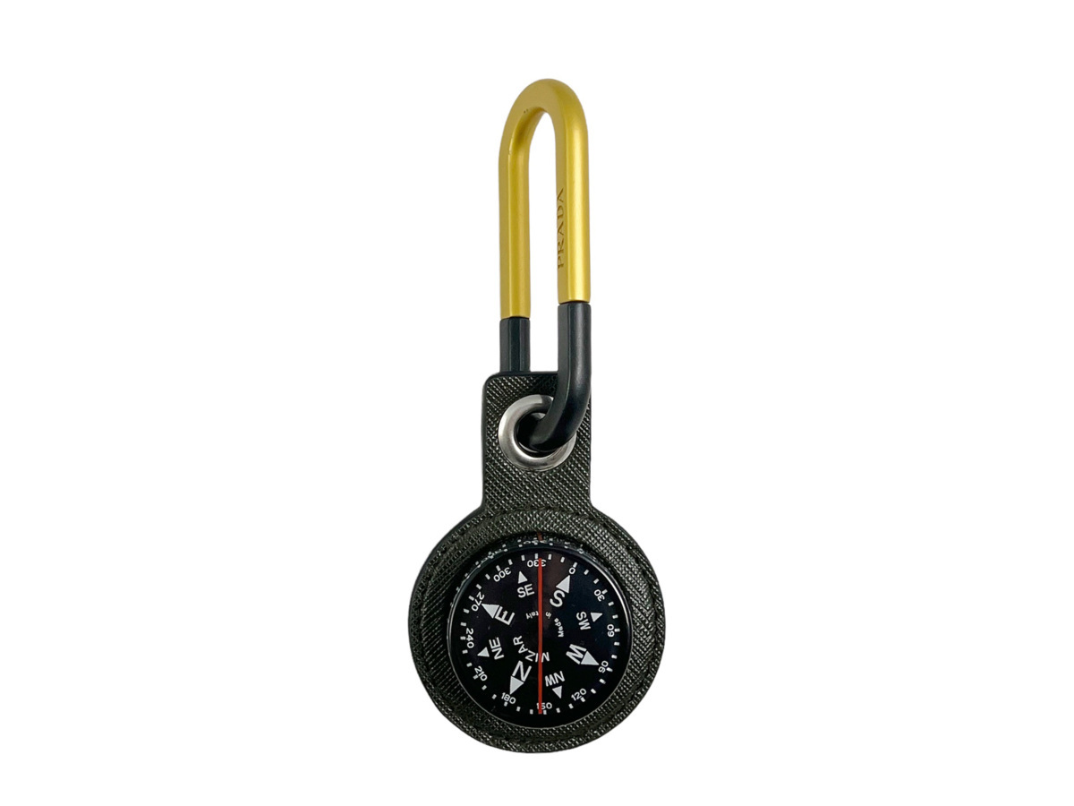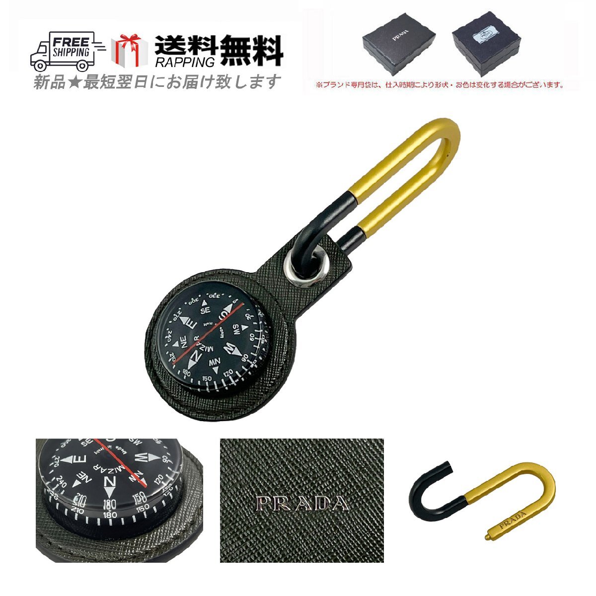 J017.. 【訳あり】【レア】 PRADA プラダ コンパス サフィアーノ ロゴ アウトドア スナップ フック 2RO001 ★ ダークカーキ