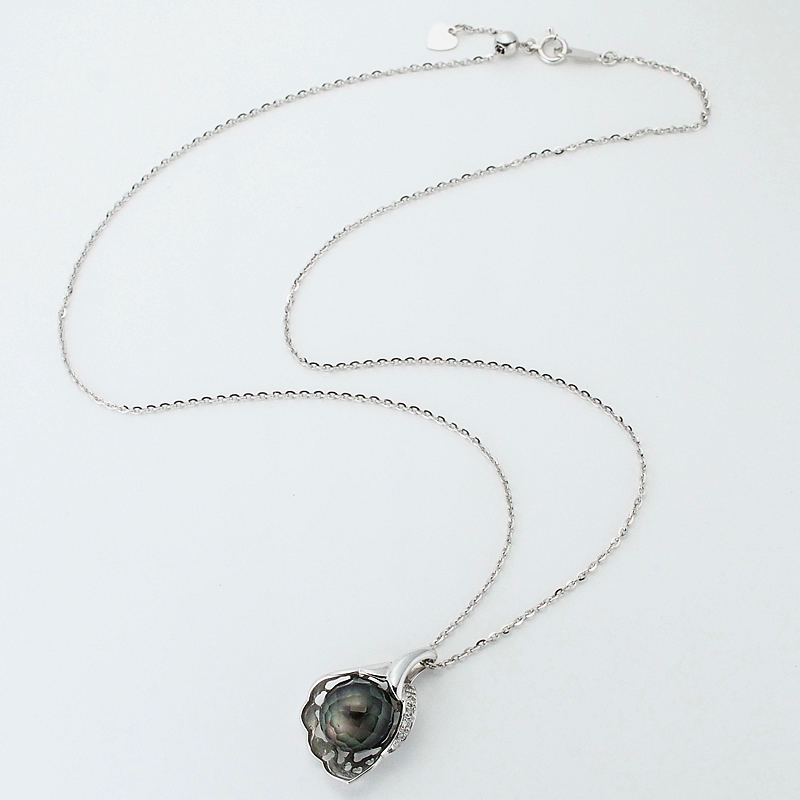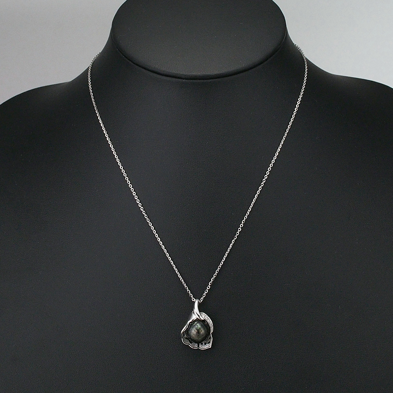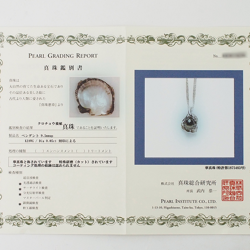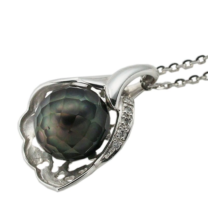 詳細:ノーブランド 黒蝶 特殊研磨 パール/9.5mm ダイヤ/0.05ct K18WG デザイン ネックレス 鑑別書付き 仕上済