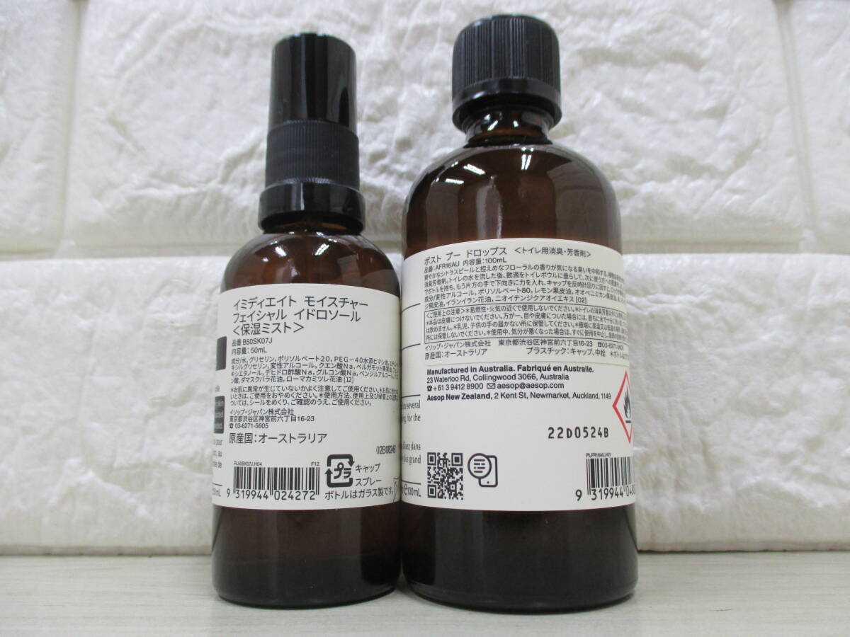 | 9F373MZ4◇Aesop イソップ ポスト プー ドロップス 100ml / イミディエイト モイスチャー フェイシャル イドロソール 50ml◇未使用 | |