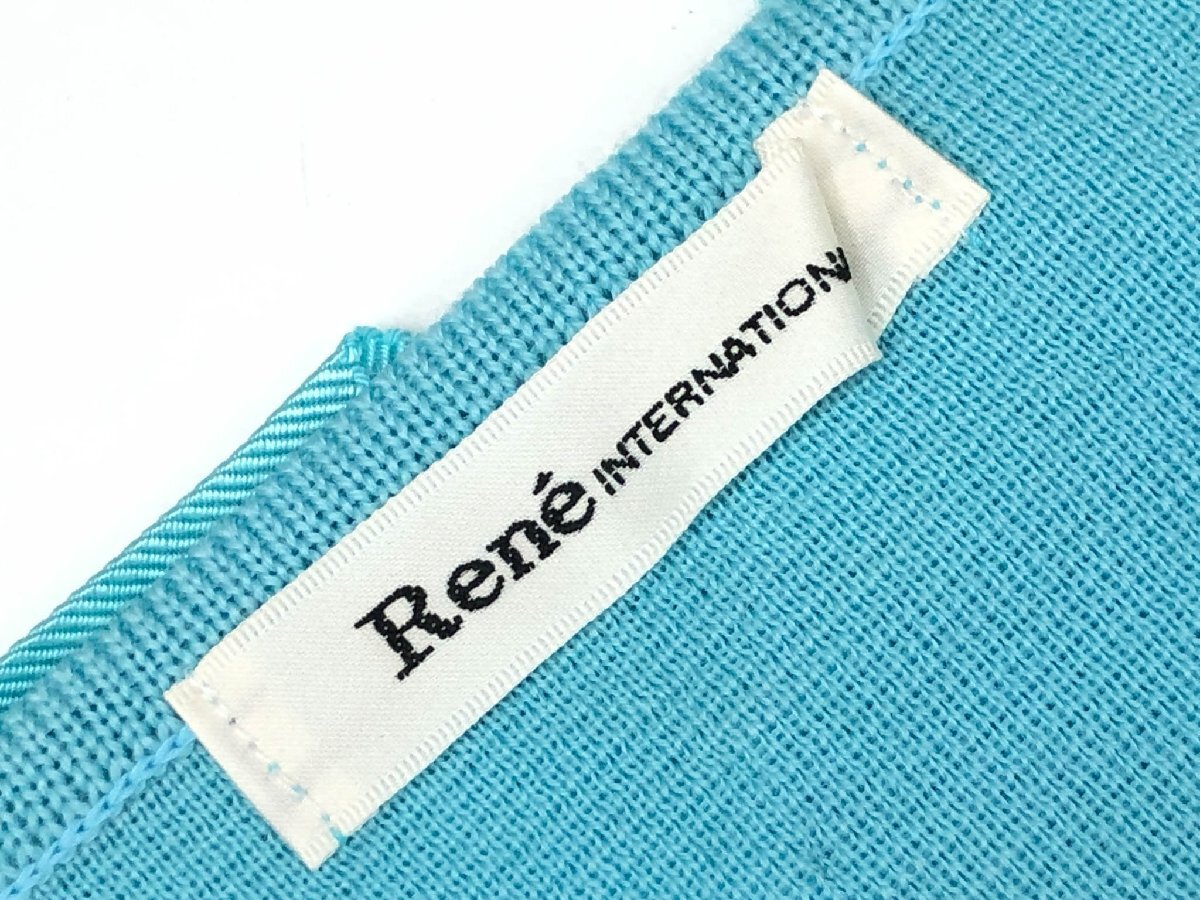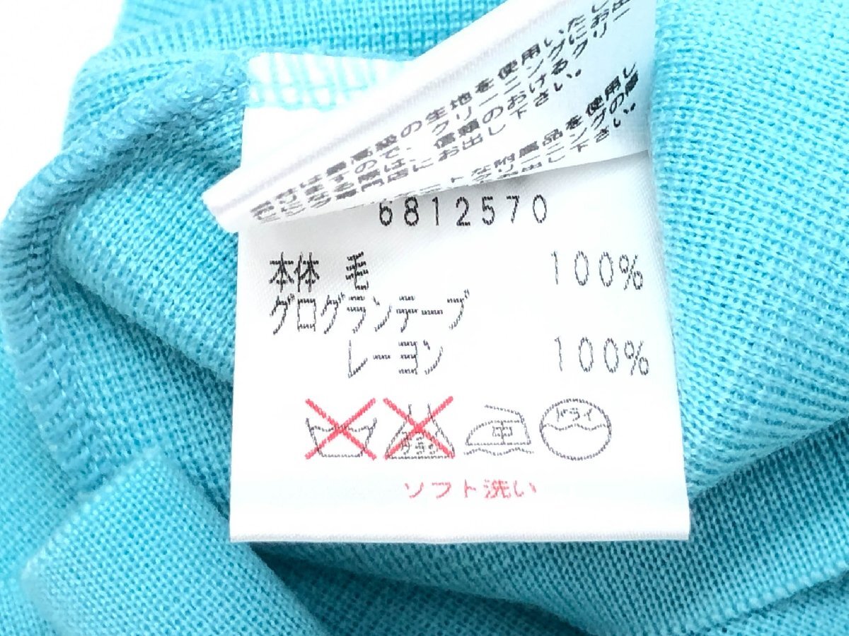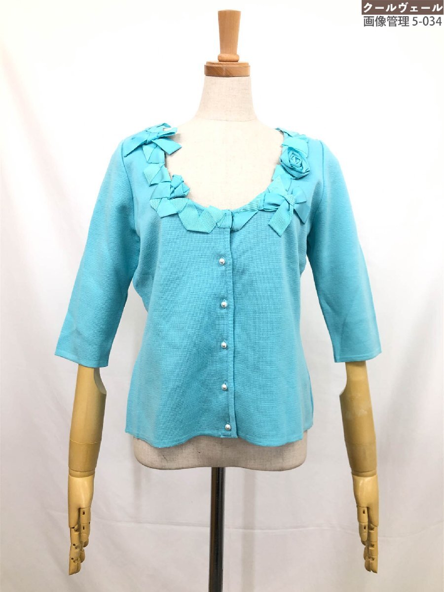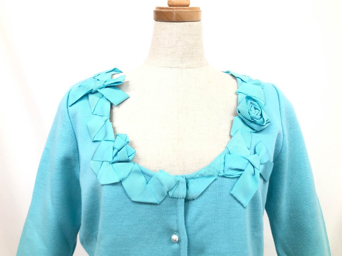 極美品【ルネインターナショナル Rene】6812570 ウール100% フラワー×リボン 五分袖ニットカーディガン(レディース) 38 水色◇35LN5991◇