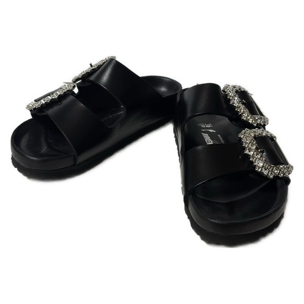 ビルケンシュトック BIRKEN STOCK サンダル 23.0 - レザー 黒 レディース ラインストーン 靴