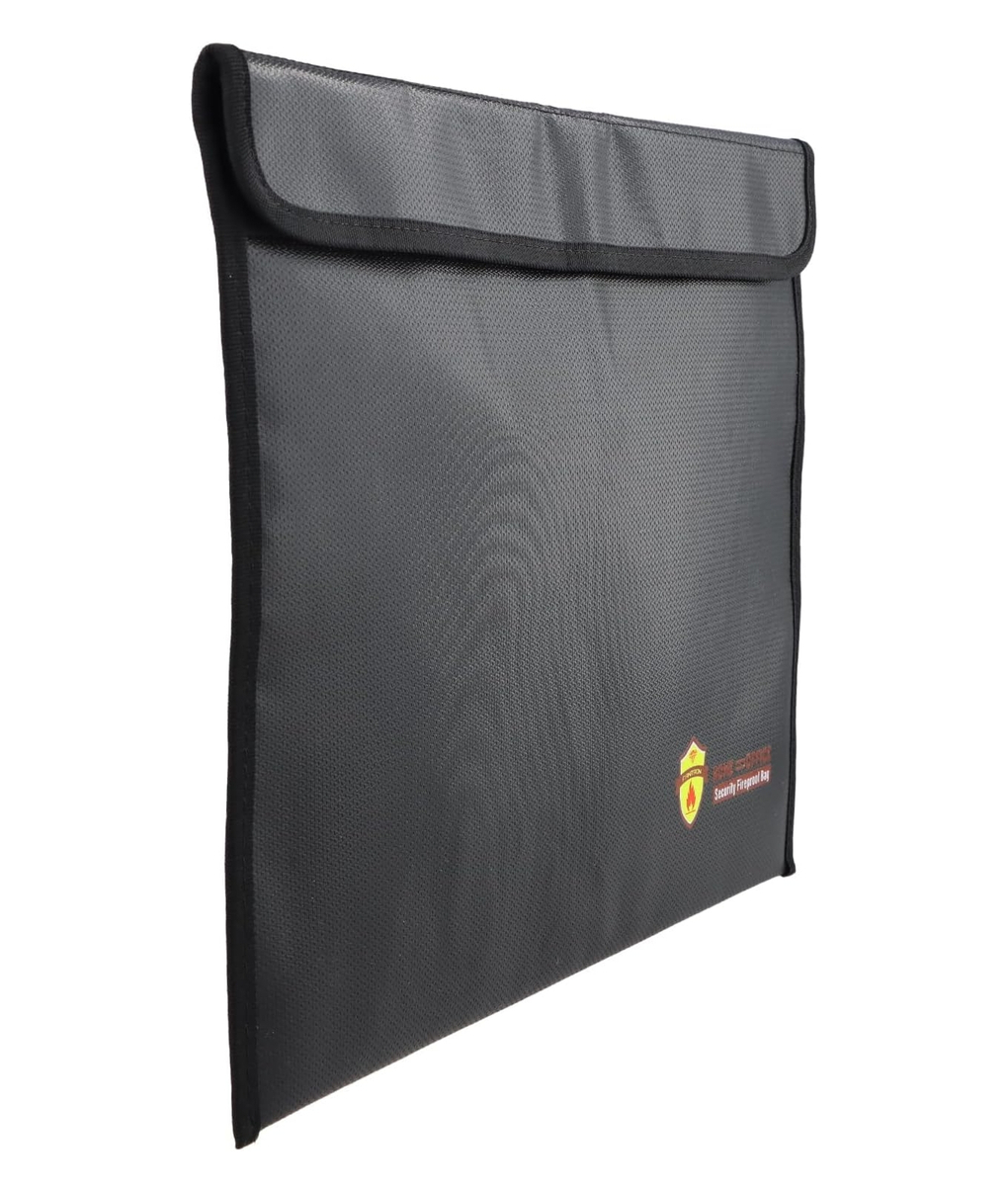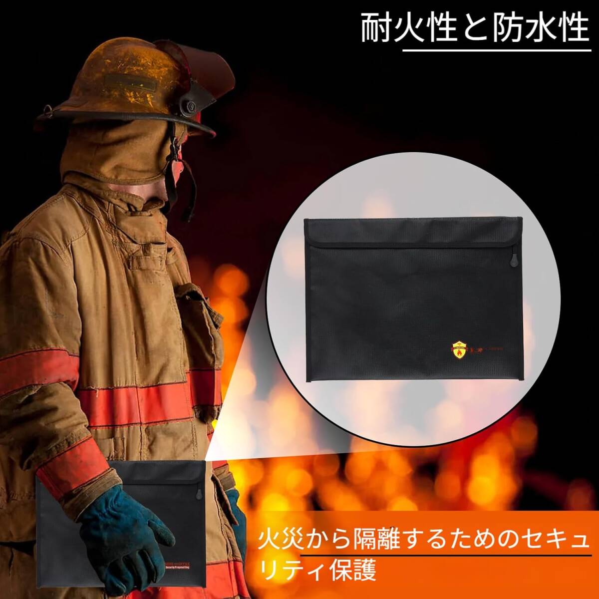 耐火バッグ 耐火書類保管バッグ 37.5x27.5cm ブラック 防水 防災袋 耐熱1200℃ 大容量 ファスナー式 現金収納 貴重品