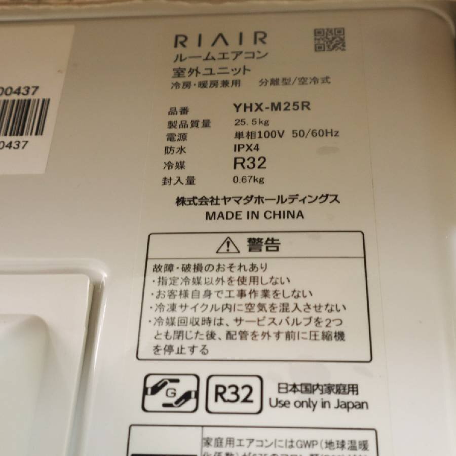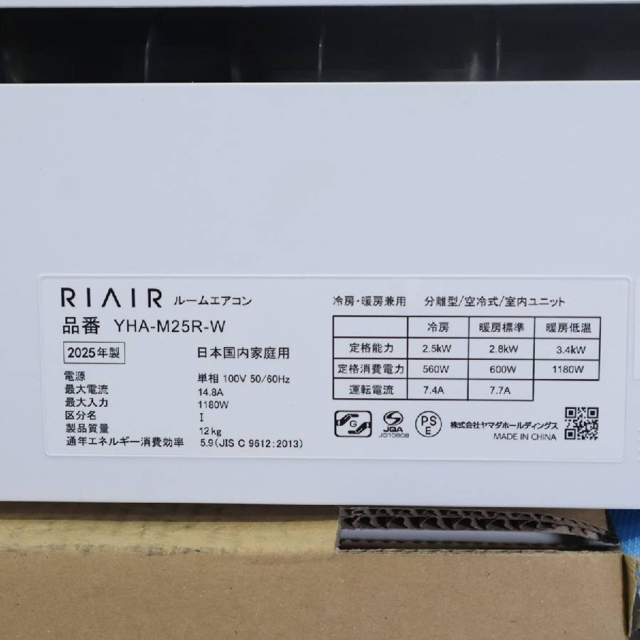 メーカー再生品 2025年製 RIAIR ヤマダ電機 2.5kw 8畳 エアコン 室内機 YHA-M25R-W 室外機 YHX-M25R□263h07