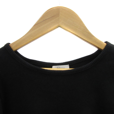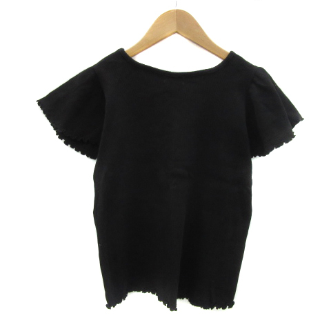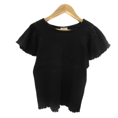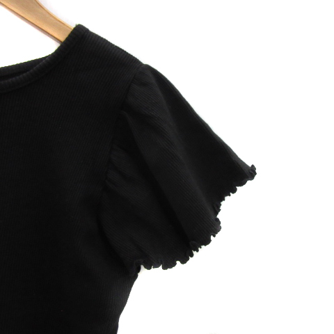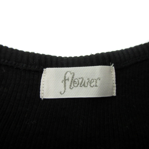 フラワー FLOWER リブカットソー 半袖 フラッタースリーブ ラウンドネック 無地 F 黒 ブラック /YS29 レディース