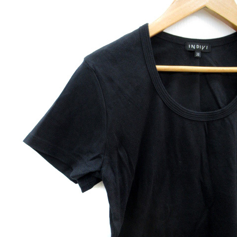 インディヴィ INDIVI Tシャツ カットソー 半袖 38 M 黒 ブラック /SM26 レディース