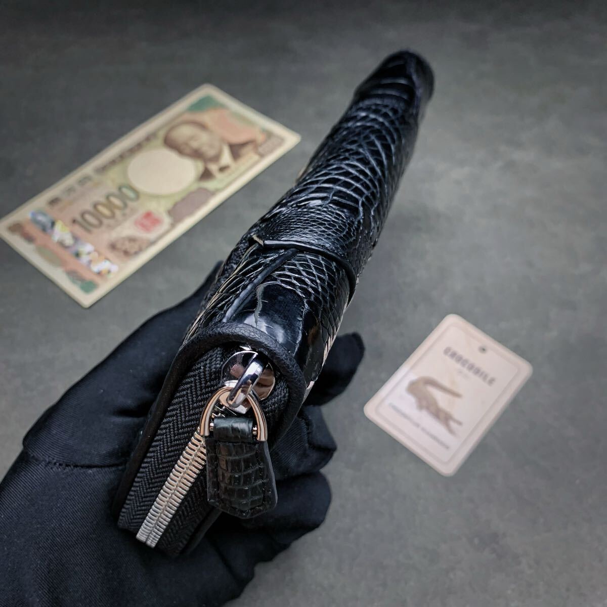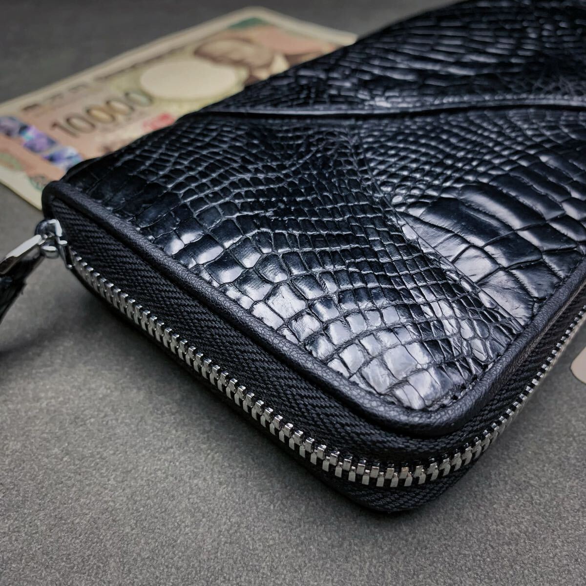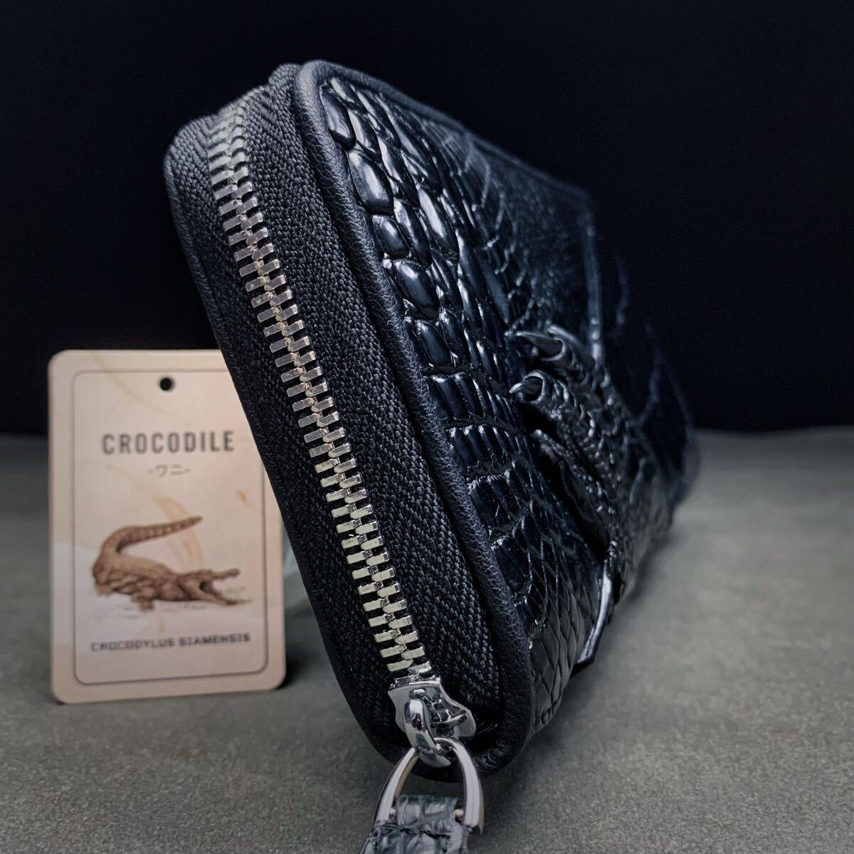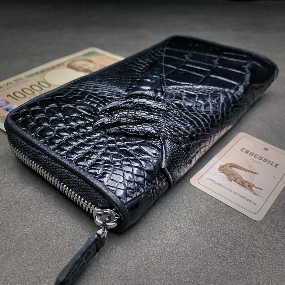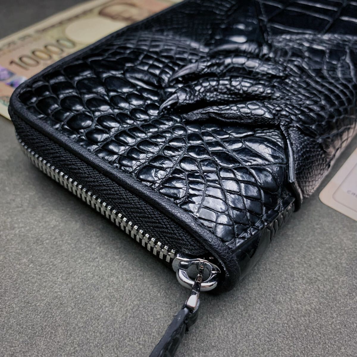 クロコダイル 長財布(ラウンドファスナー/センター部位/ハンドメイド/ワニ爪付き/本物/腹革使用/本ワニ革/新品未使用/実物写真)