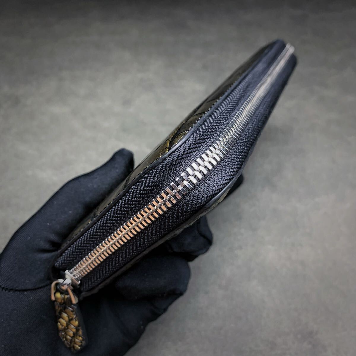 クロコダイルと呼ばれている品種のワニ革は人気が高く、独特の模様と凹凸が魅力で、高級ブランド品を中心にクロコダイルが多く使われています。今回はワニ革の代表格である<シャムクロコダイル>の腹革部のラウンドファスナー財布を出品します。