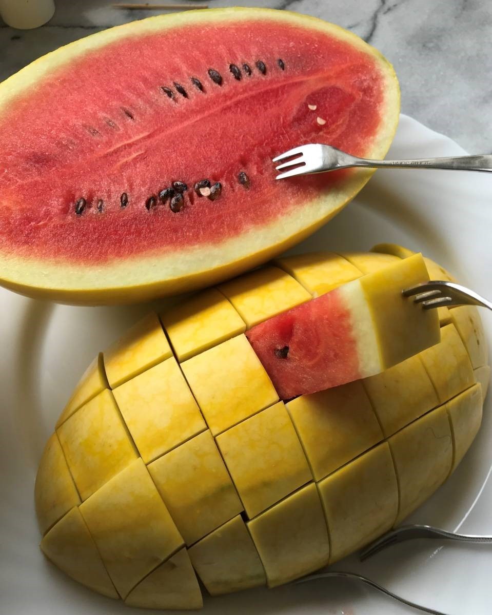 東南アジア、南洋諸島国の在来種で金色皮、真っ赤な肉のすいかは