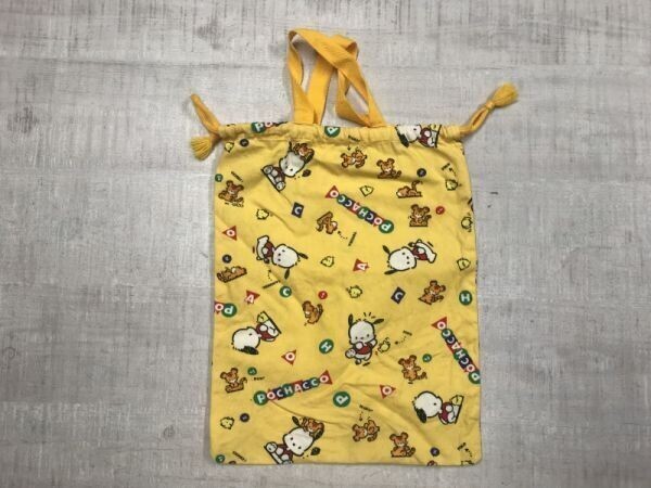 ポチャッコ サンリオ SANRIO キャラクター 総柄 巾着袋 靴入れ キッズ 黄色 です。