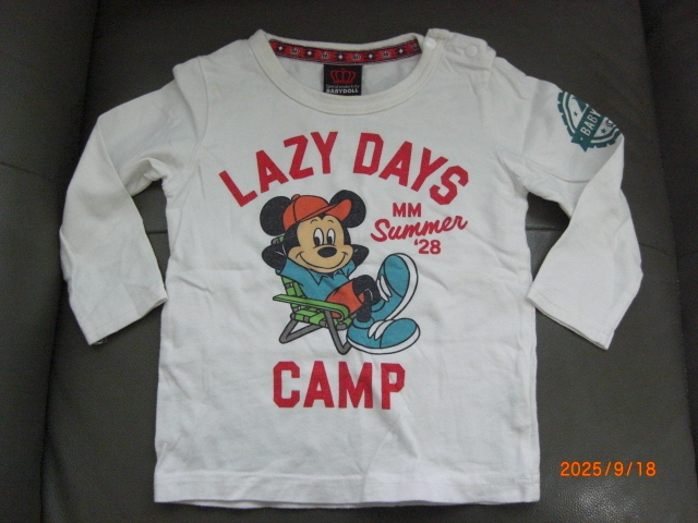 ベビードール 白地 ミッキーマウス 長袖Tシャツ