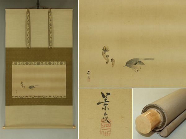 | №2506021【模写】松村景文【福寿草に鶯】◆紙本◆合箱◆掛軸 | |