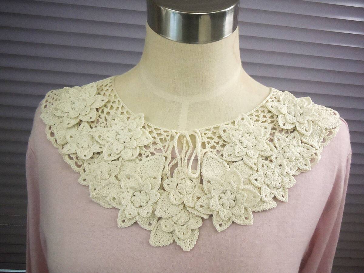 レース編み花モチーフつけ襟(247)