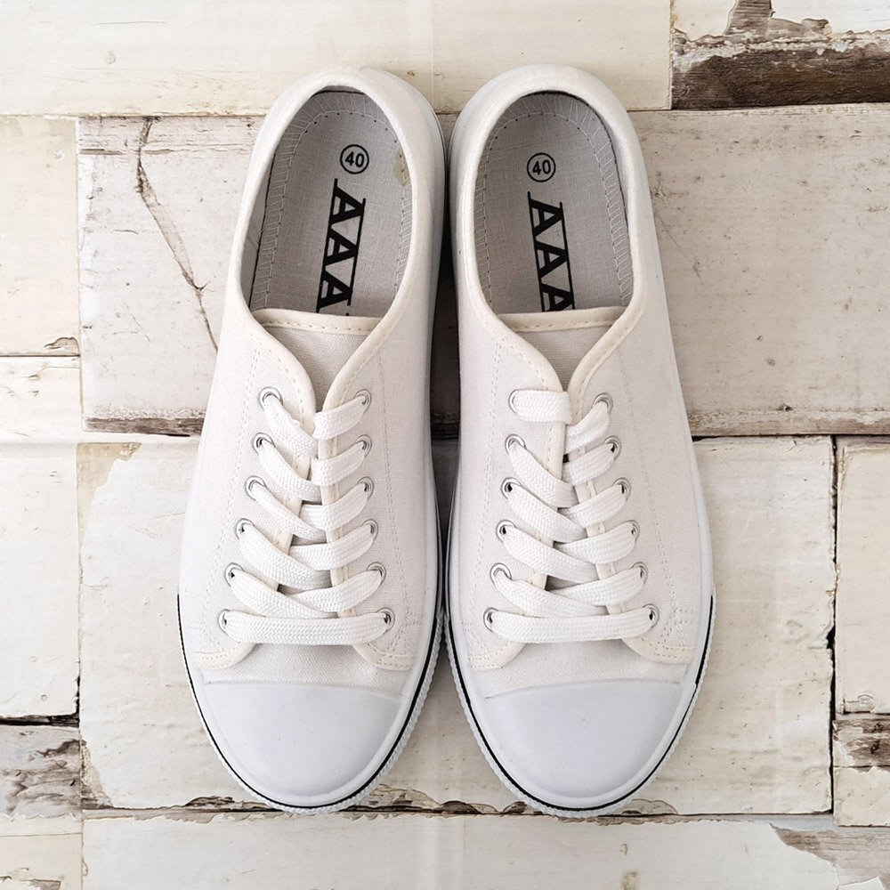 【AAA+ サンエープラス】のキャンバススニーカー。 シンプルデザインだから通年履けて様々なコーデにもマッチするアイテム! カジュアルだけでなくストリートやスポーティなコーディネートにもピッタリな毎日気兼ねなく履ける一足です。 |