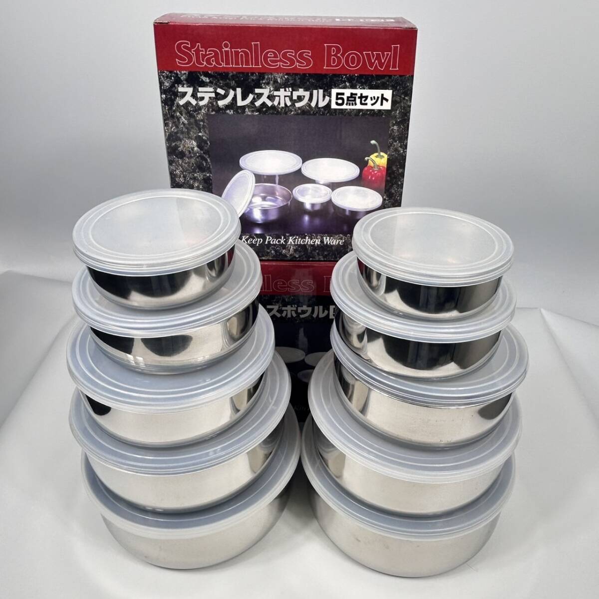 F12140 ステンレスボウル 5点×2セット 食器 タッパー お弁当箱 保存容器 フレッシュキッチンパック ポリプロピレン 箱付き | ||