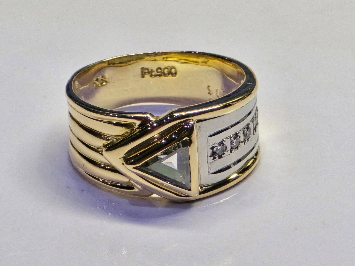 ★オシャレ■特価品■指輪■ダイヤ0.50ct・0.06ct■K18・プラチPt900■5.9g■12号■中古品■ | |||||||||||