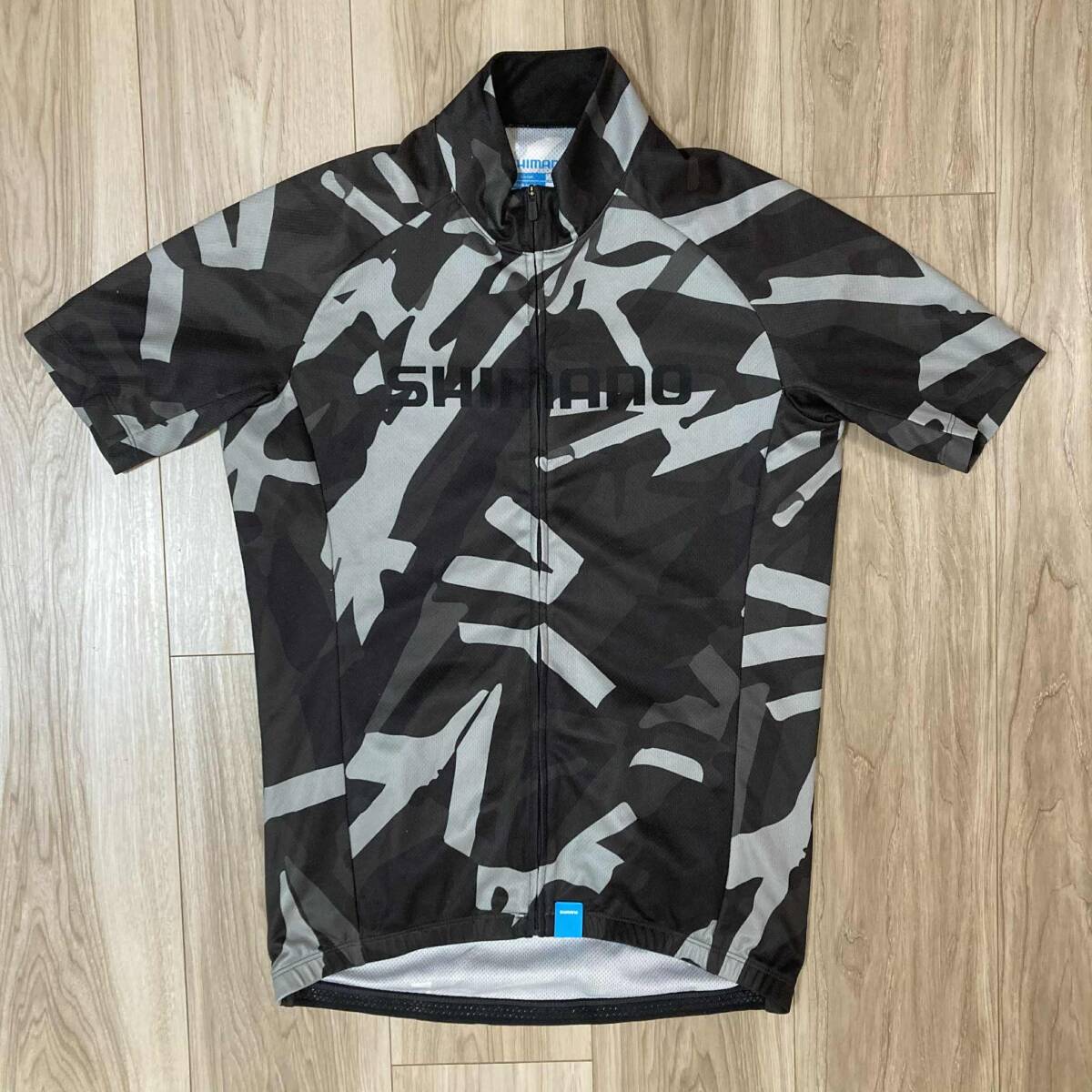 送料230★シマノ Mサイズ メンズ 半袖サイクルジャージ SHIMANO ロゴ / バックプリント 速乾素材 3ポケット 良質品 n618 モノクロ系 迷彩柄
