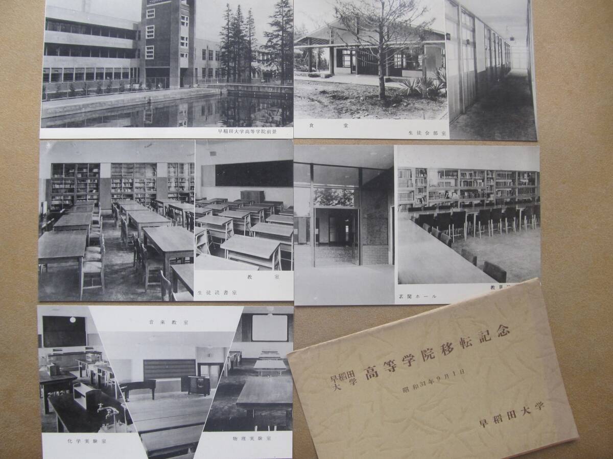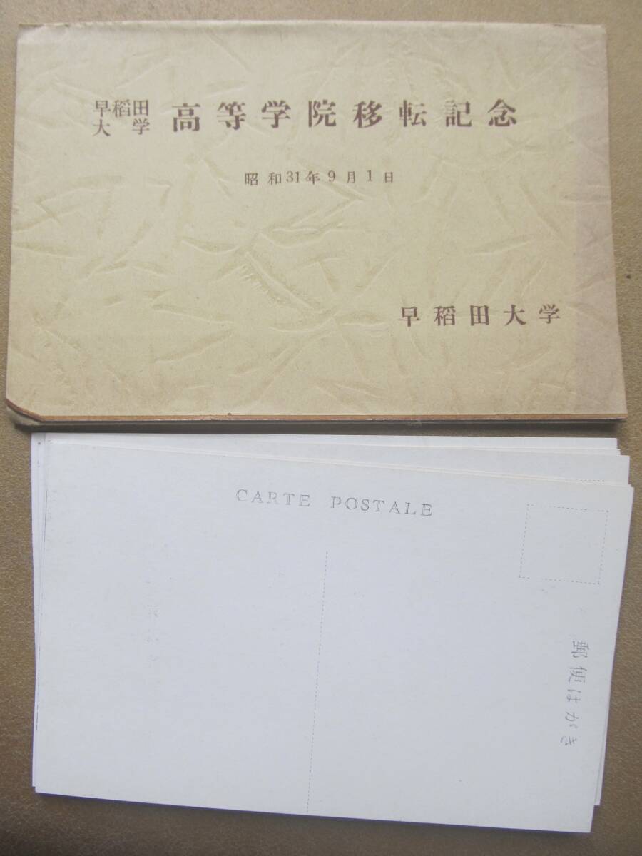 昭31 早稲田大学【高等学院移転記念】絵葉書 5枚,袋