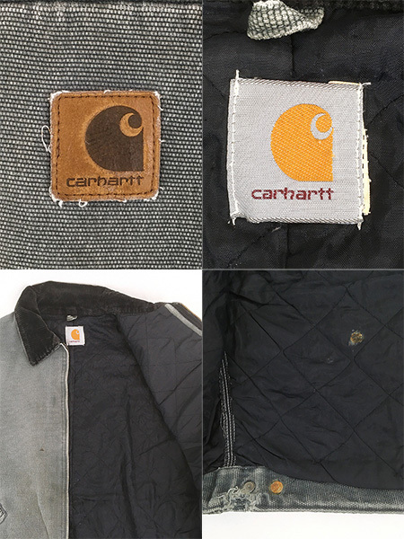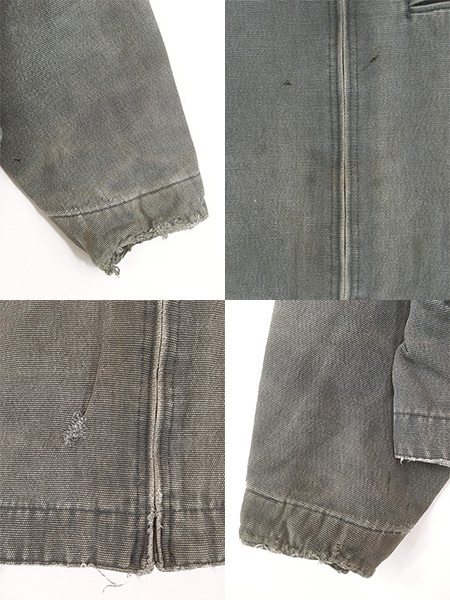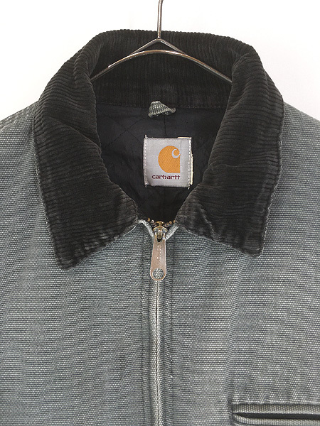 価格高騰が著しいカーハートの名作デトロイトジャケット。襟はブラックコーデュロイ、裏地中綿入りのナイロンキルティングです。ダメージもワークウェアならではのアジになっています!!