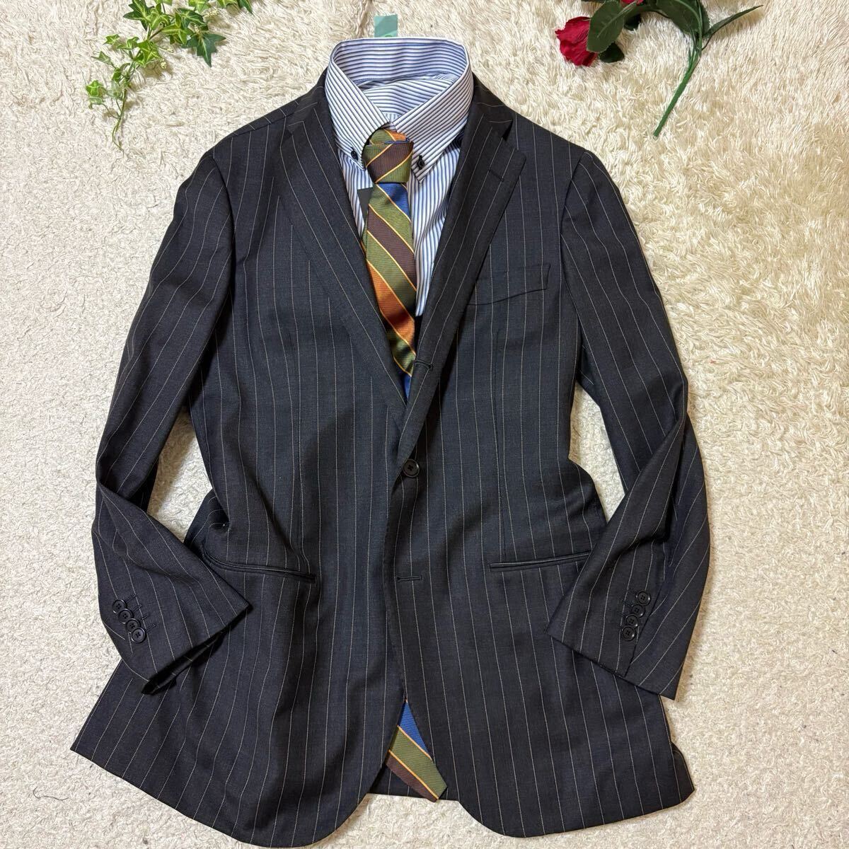 チャコールグレーにブラウンのストライプが映えており、ビジネスを中心に幅広く活躍出来ます。