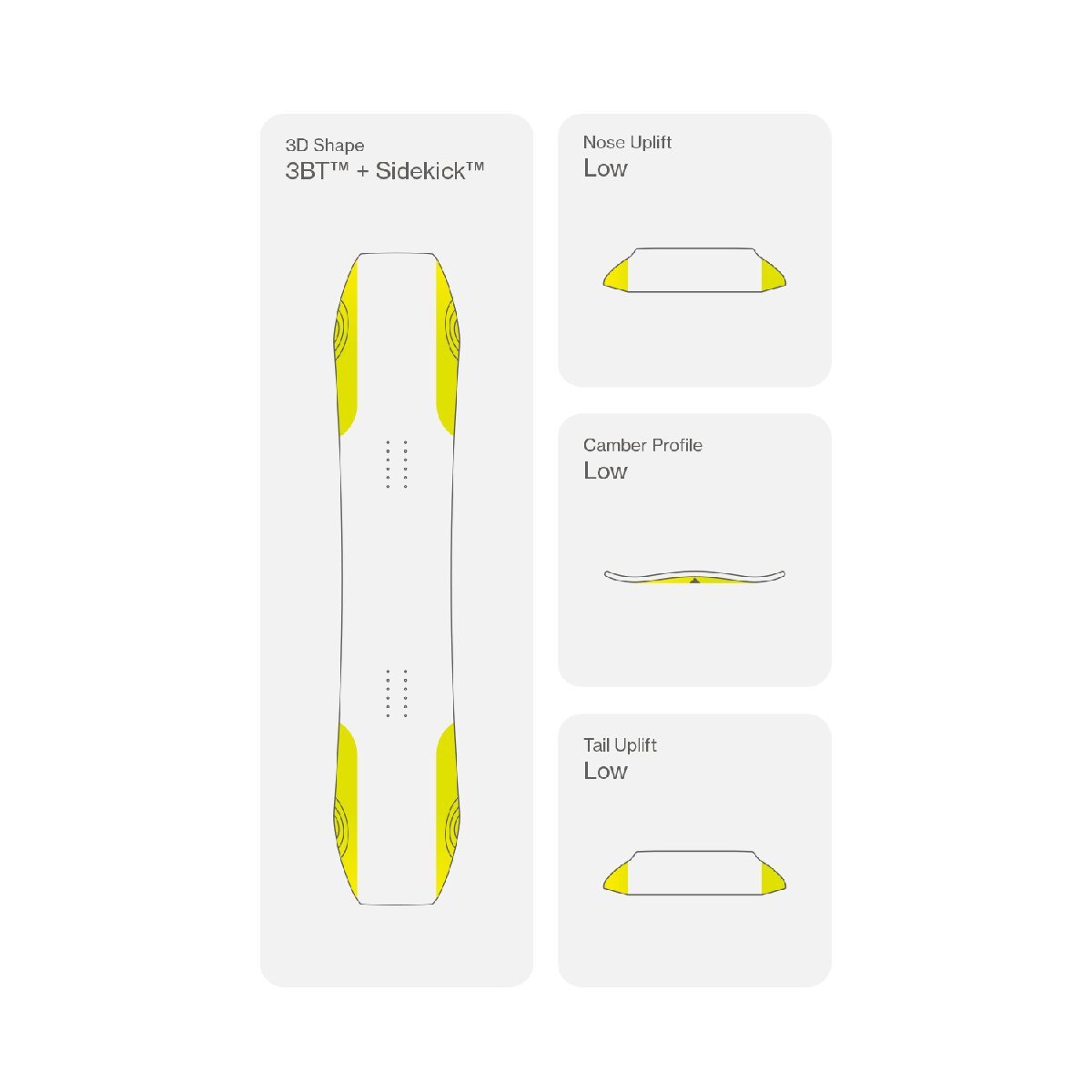 「Wallie」は、おなじみのスポットで新たな可能性を発見したり、今までの不可能を可能にすることができるボードです。パークやフリースタイルのスキルアップを目標に設計されており、スーパーチューブ、カーボンストリンガー、ユニークなウォーリーチップを搭載してます。ジェンダーレスコレクションの中の1本で、どんなスノーボーダーにもフィットするサイズ展開を提供しています。