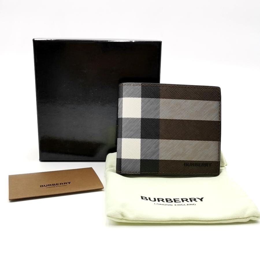 ・送料無料 超美品 バーバリー BURBERRY 財布 二つ折り 8052802 A8900 4500552622 8026116-1 コンパクトウォレット ジャイアントチェック チェック柄 PVC 茶 ブラウン系 メンズ