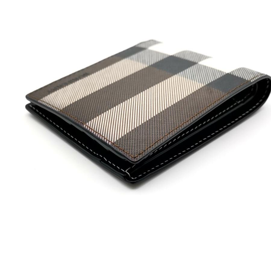 送料無料 超美品 バーバリー BURBERRY 財布 二つ折り ジャイアントチェック チェック柄 PVC 茶 ブラウン系 メンズ