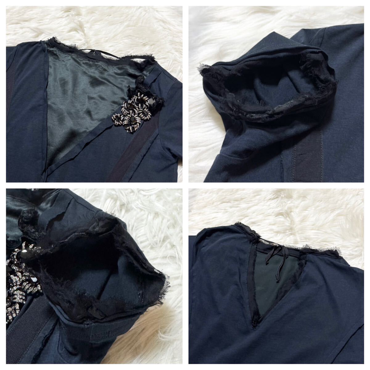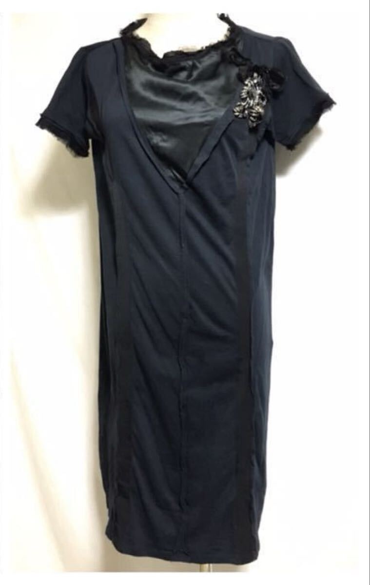 ○本物 プラダ フラワービジュー装飾付き シルク レース切替 ワンピース ドレス S 黒 紺 PRADA ○色 : ネイビー ブラック系 ○サイズ:S (9号のトルソーに着せております。) 伸縮性あり 着丈:88 身幅:45 肩幅:41 袖丈:16 (CM) ○素材 : コットン100% シルク100% ○状態 : (若干の薄汚れ、再度に極小のピンホールがございますが、比較的美品です。) ○定価 16万円程 シックで洗練された女性を連想させるデザインに、きらびやかな装飾フラワーストーンが非常にエレガントです。トレンドに左右されない長く愛用できる逸品です。
