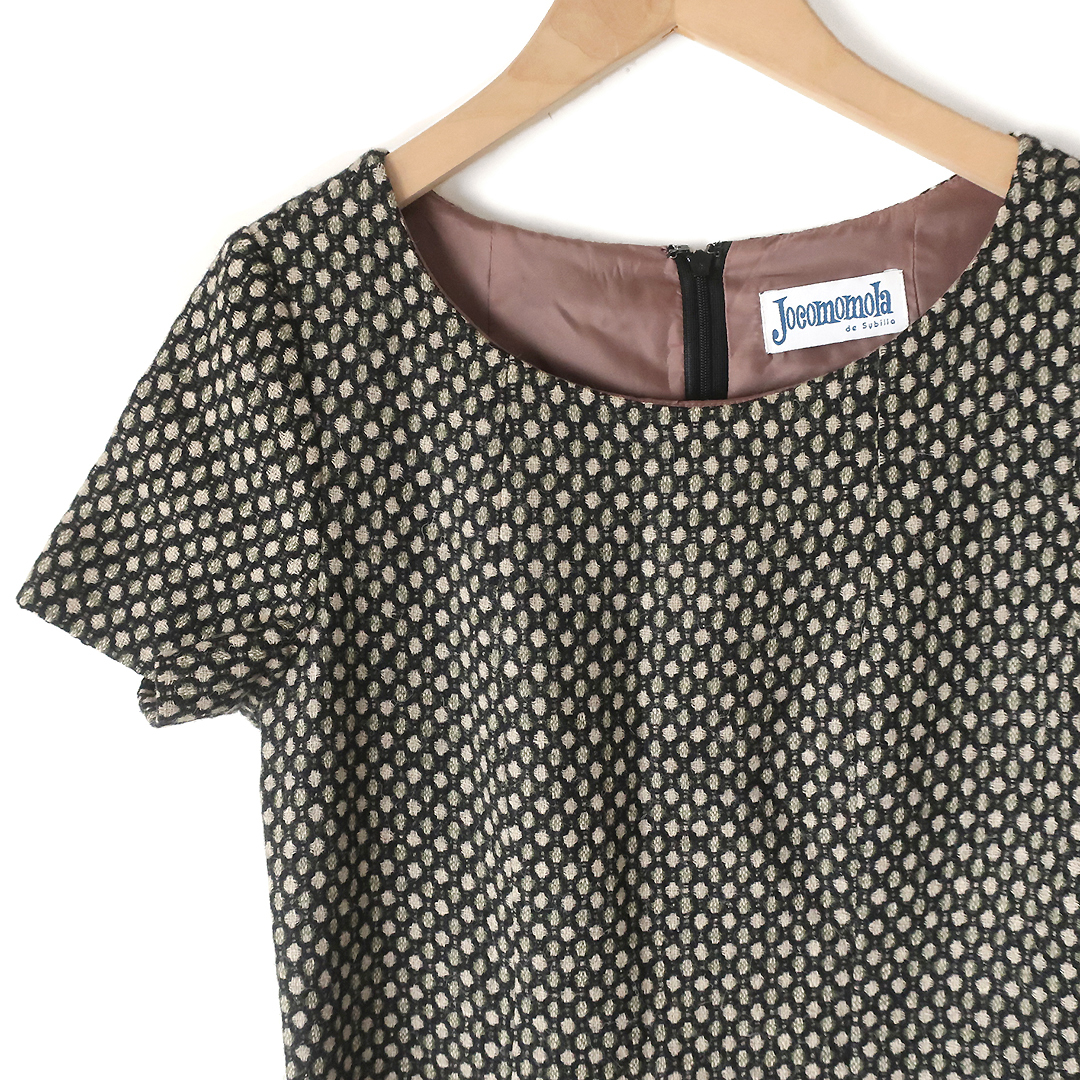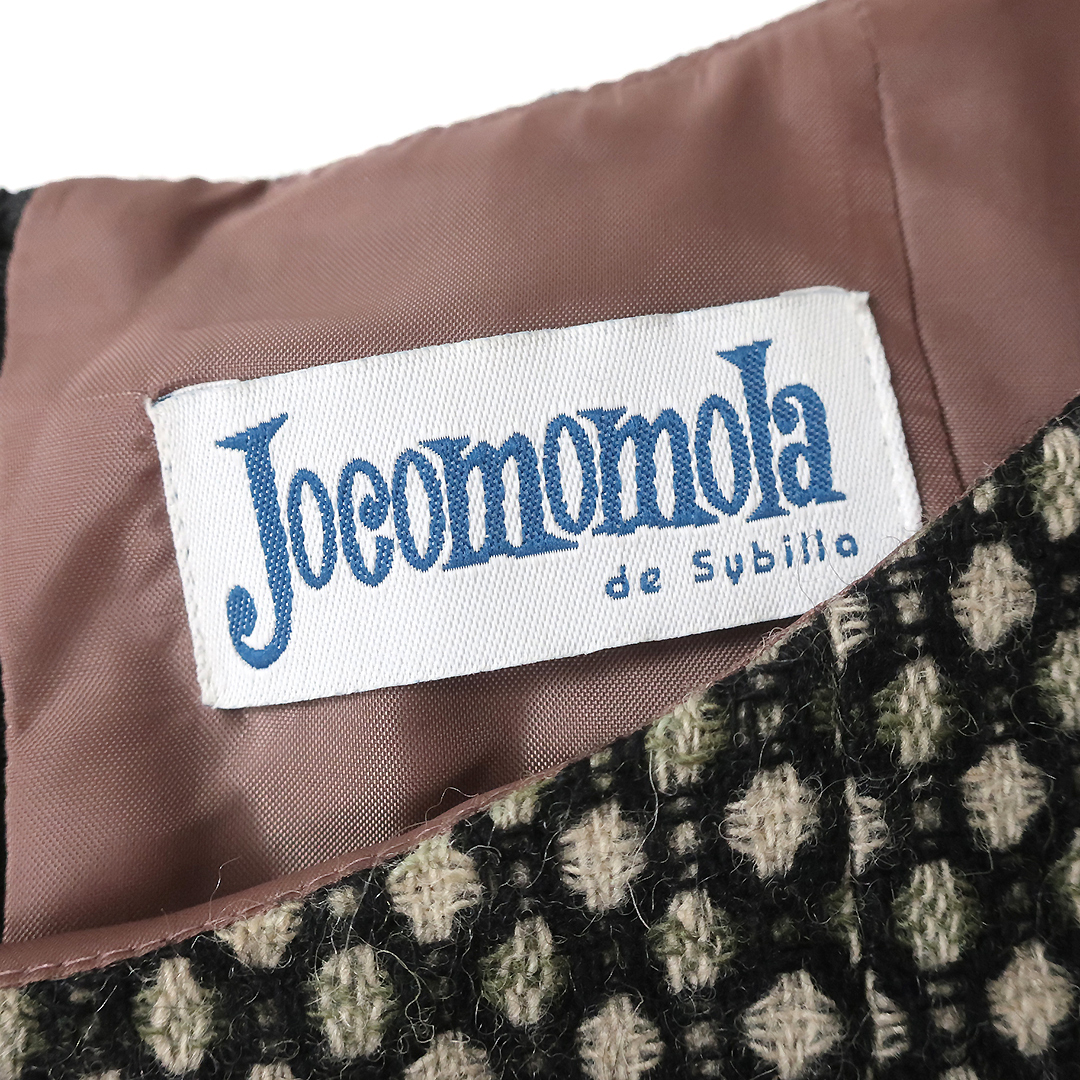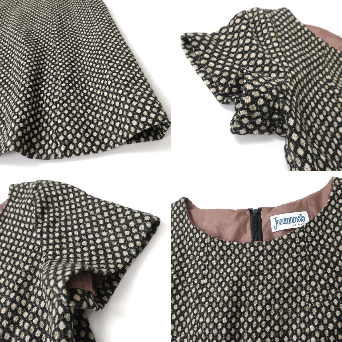 Jocomomola ホコモモラ ジャガードメッシュ編みニットワンピース ウール混 ブラック 40