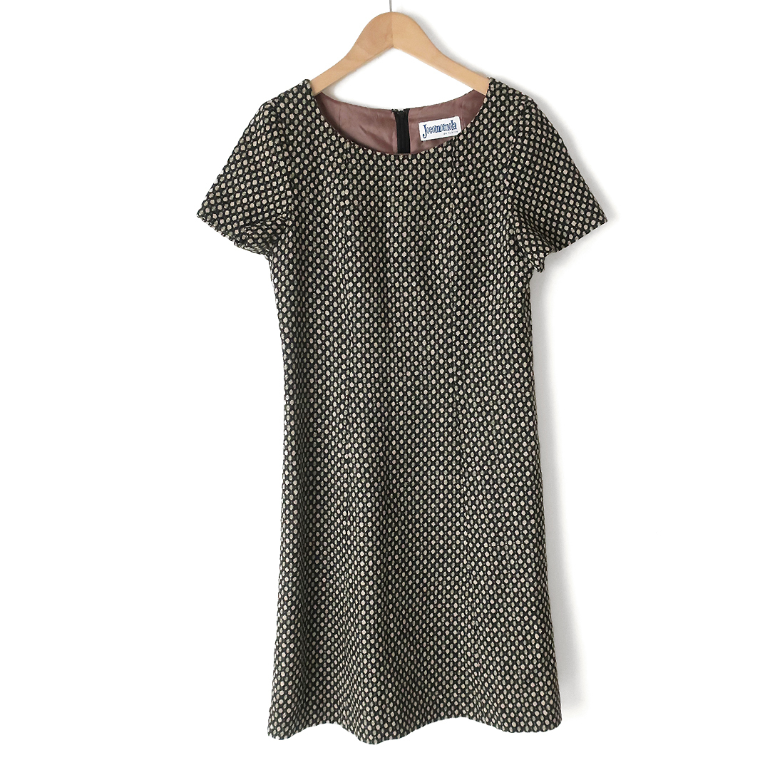 ウール/レーヨンブレンド ジャガードメッシュ編みラウンドネックワンピース