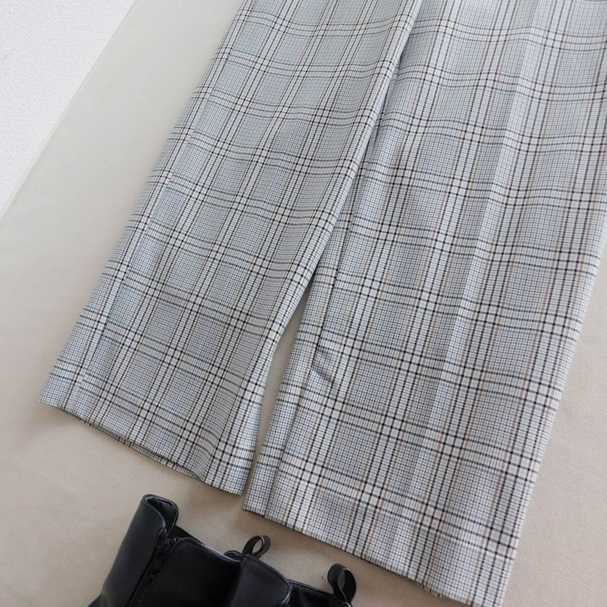 グレーのチェック柄のワイドめパンツがかわいいです。