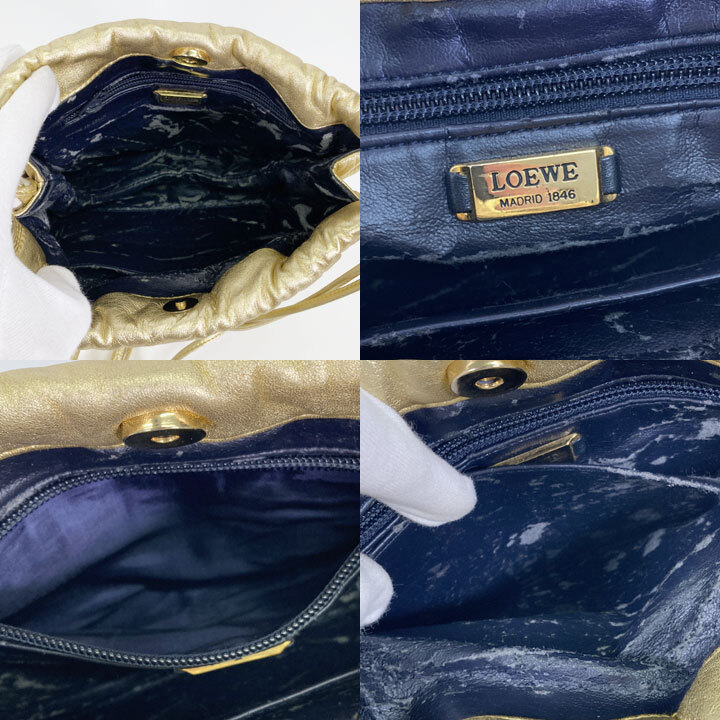 【訳アリ】ロエベ LOEWE ショルダーバッグ 巾着 アナグラム ゴールド
