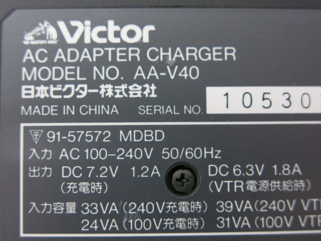 09K076 Victor ビクター ビデオカメラ ACアダプター [AA-V40] ランプまで確認 実用? 現状 売り切り