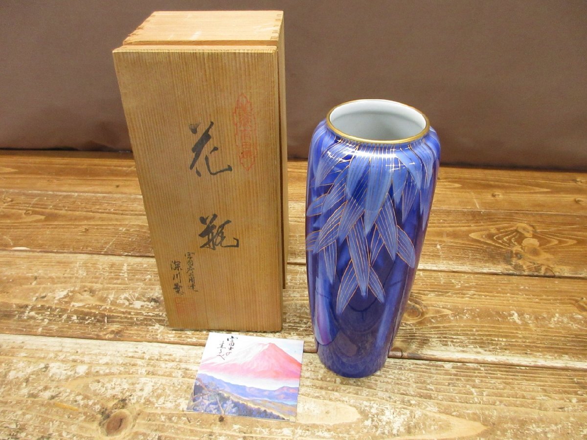 【YB-2513】未使用 有田焼 深川製磁 花瓶 花生 花器 華道具 インテリア 伝統工芸 置物 共箱付 東京引取可 同梱可【千円市場】