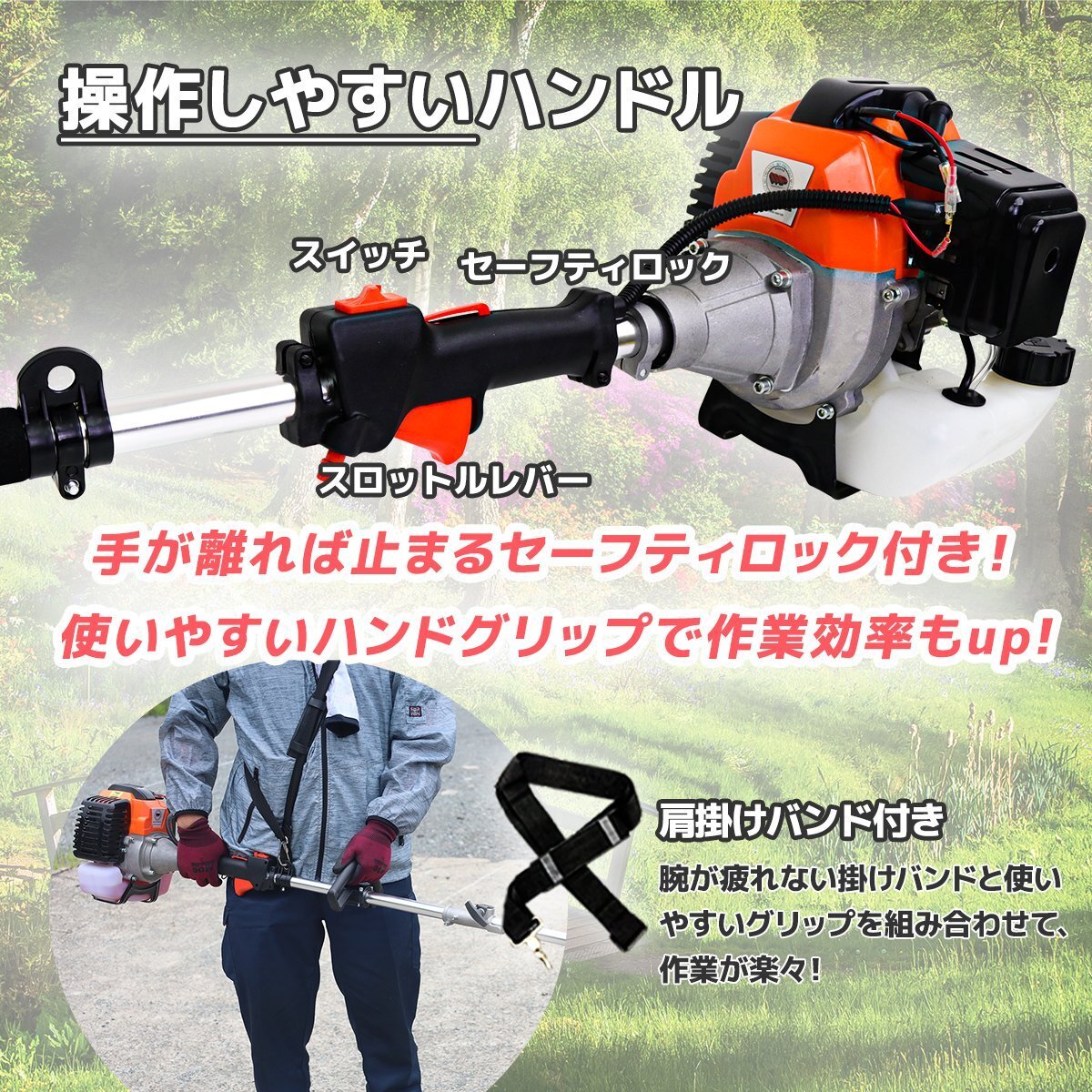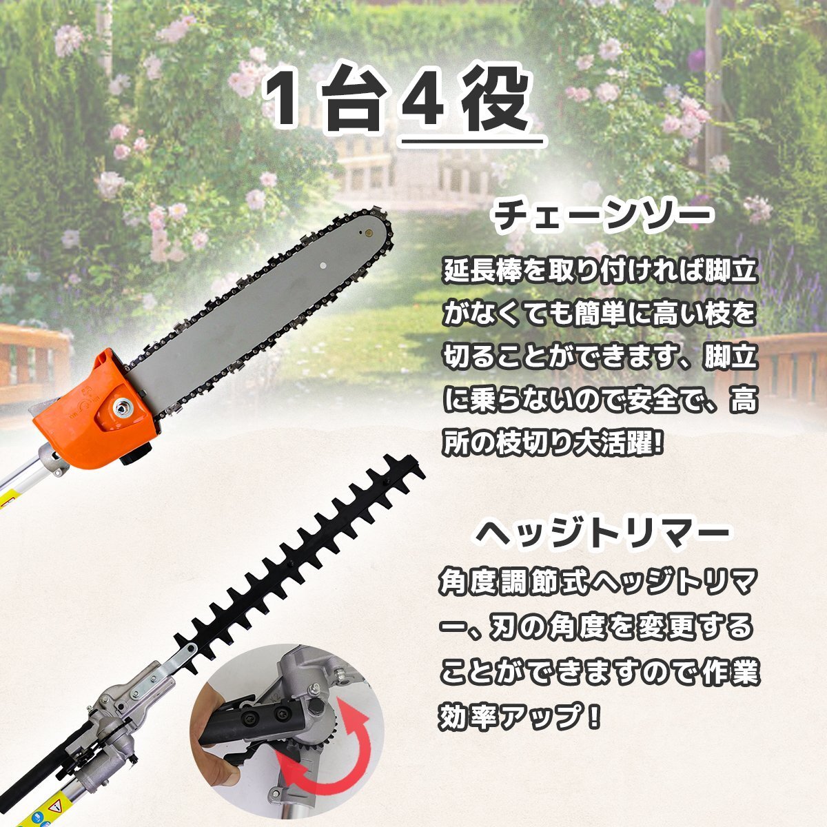 1台4役 多機能 草刈り機 ヘッジトリマー チェーンソー エンジン式 草刈機 剪定 高枝切り 高枝 チェーンソー 排気量52cc /SSX