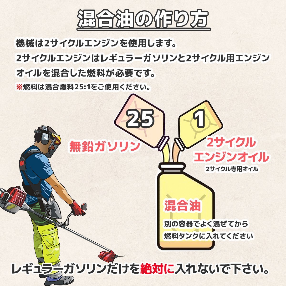 (ガソリン:2サイクル専用オイル=25:1)