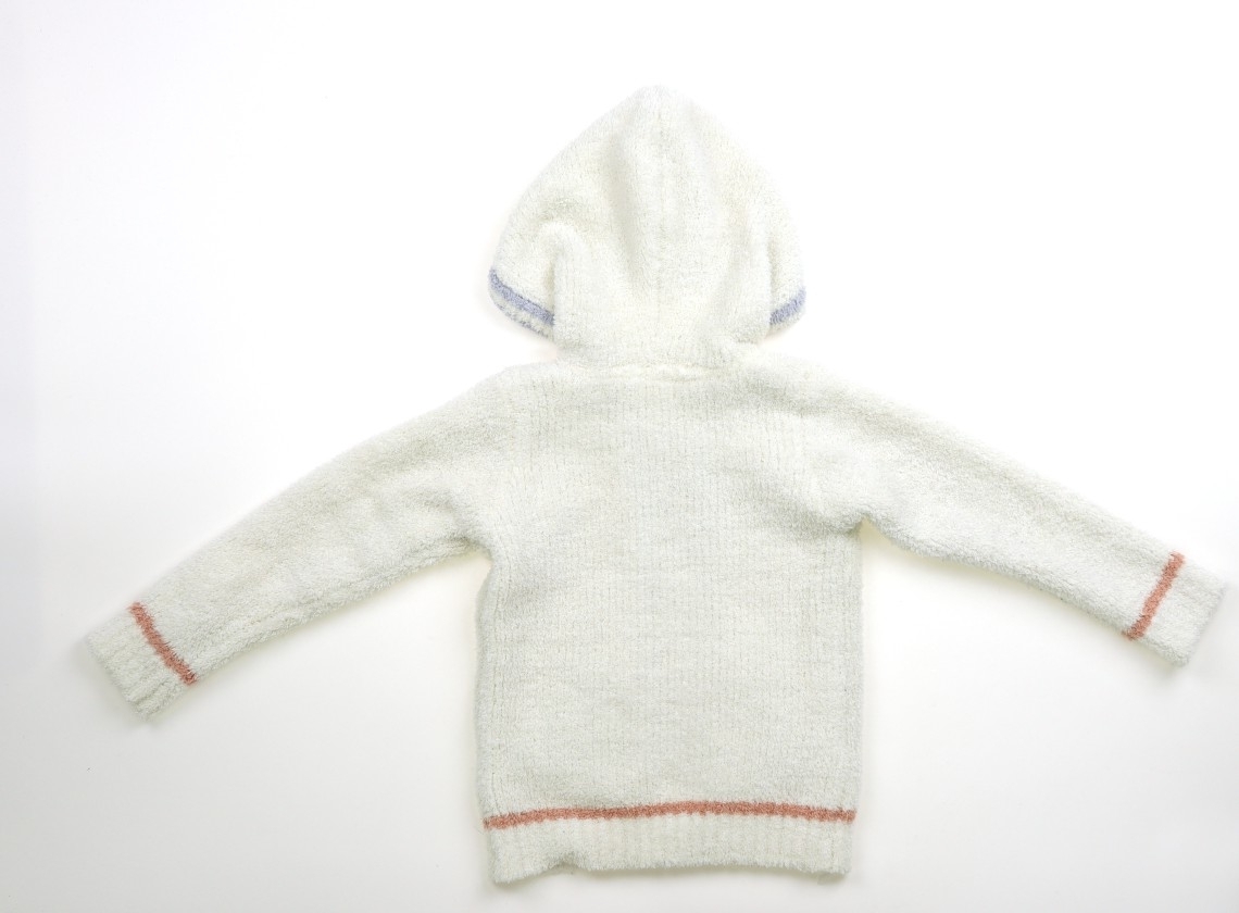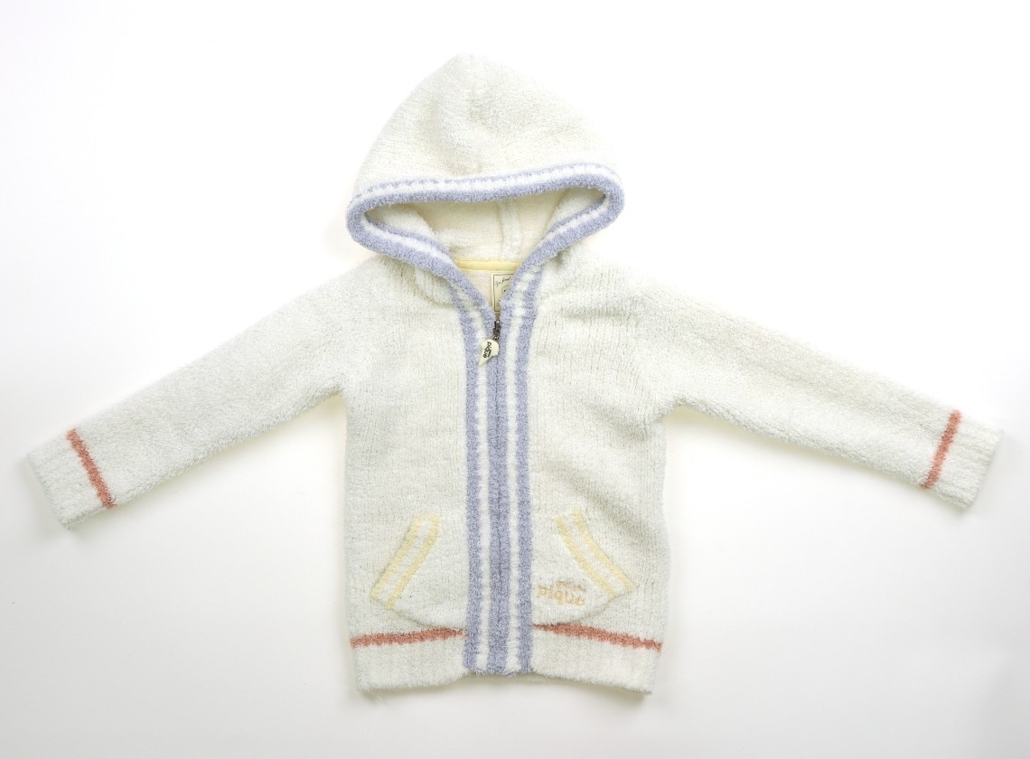 実際のサイズ表記はXXS/90-100。下腹部中央に少し毛玉感がありますが、まだお使いいただけます。男女どちらでも着られるデザインです。