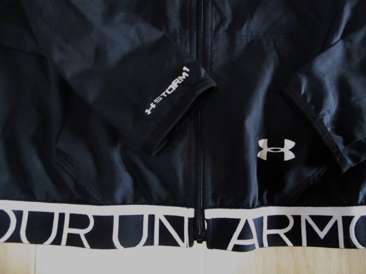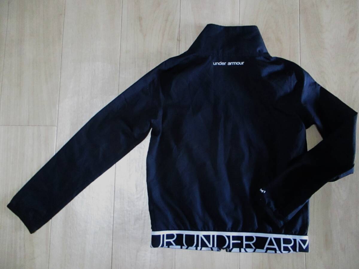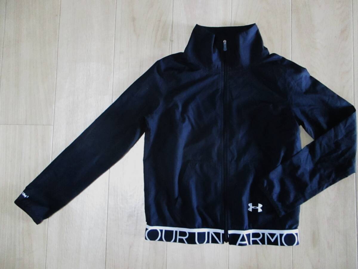 USED・美品・アンダーアーマー・薄手ウインドジャケット・黒色・サイズYMD・130~140㎝位です。実寸をご参考にして下さい。着丈46㎝・身幅脇下40㎝・ポリエステル100%・裏地は無いタイプです。ゆうパケットミニ180円で発送させて頂きます。