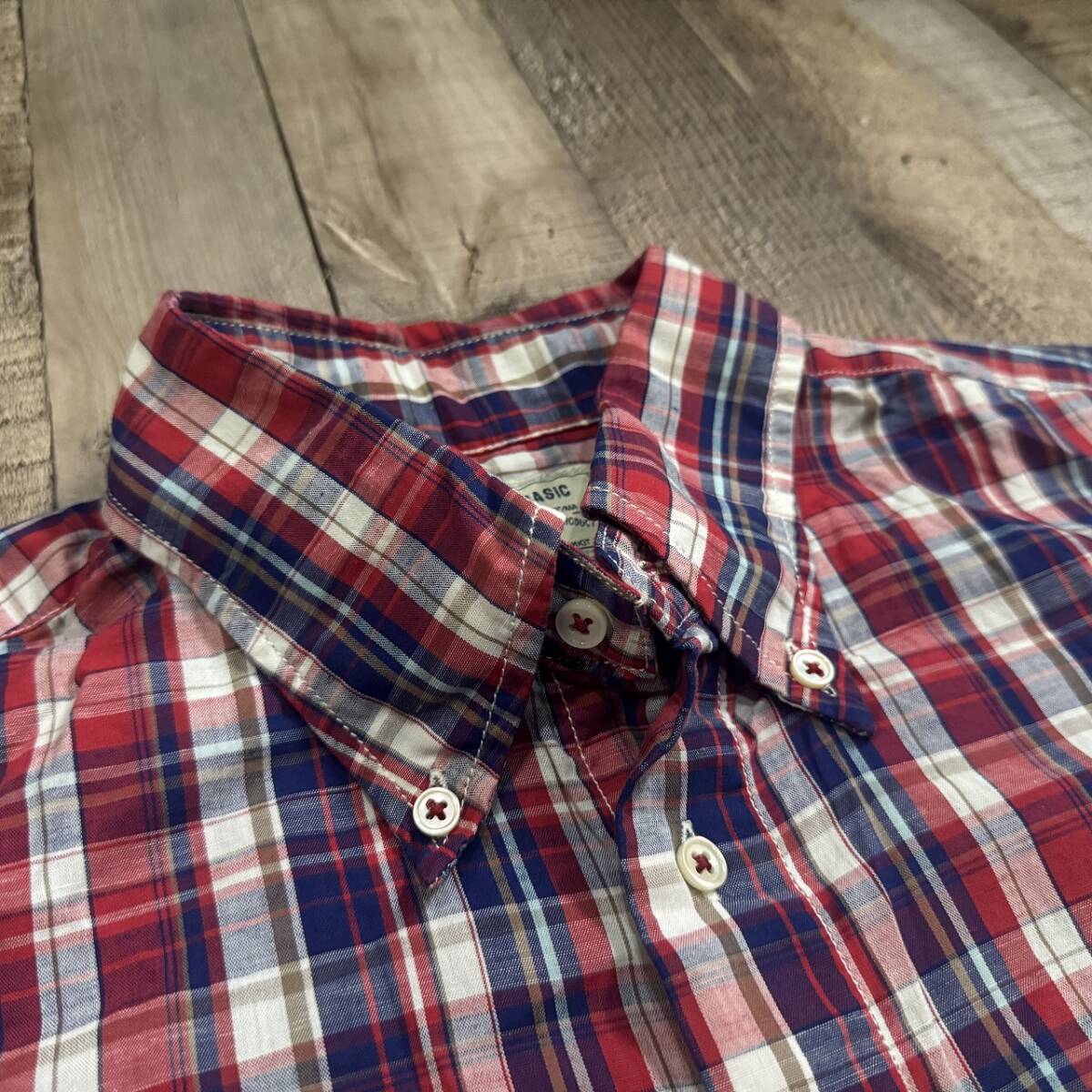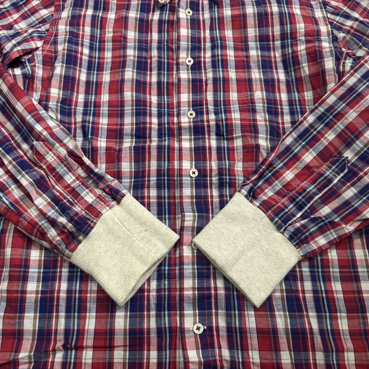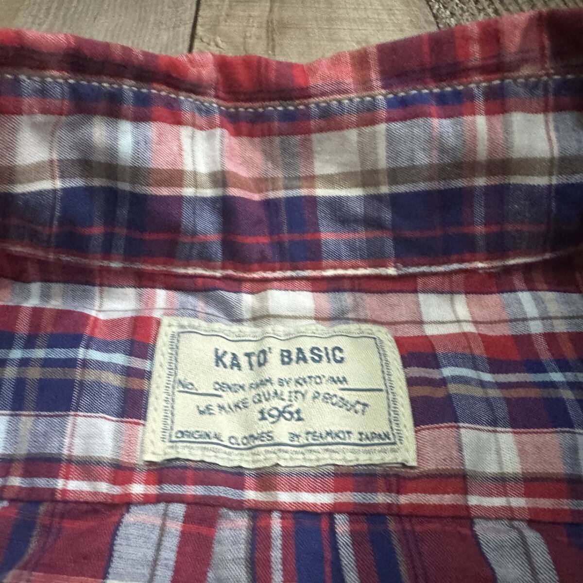 即決・クリックポスト発送・KATO' BASICの袖口がリブ仕様のボタンダウンシャツ・赤系・M