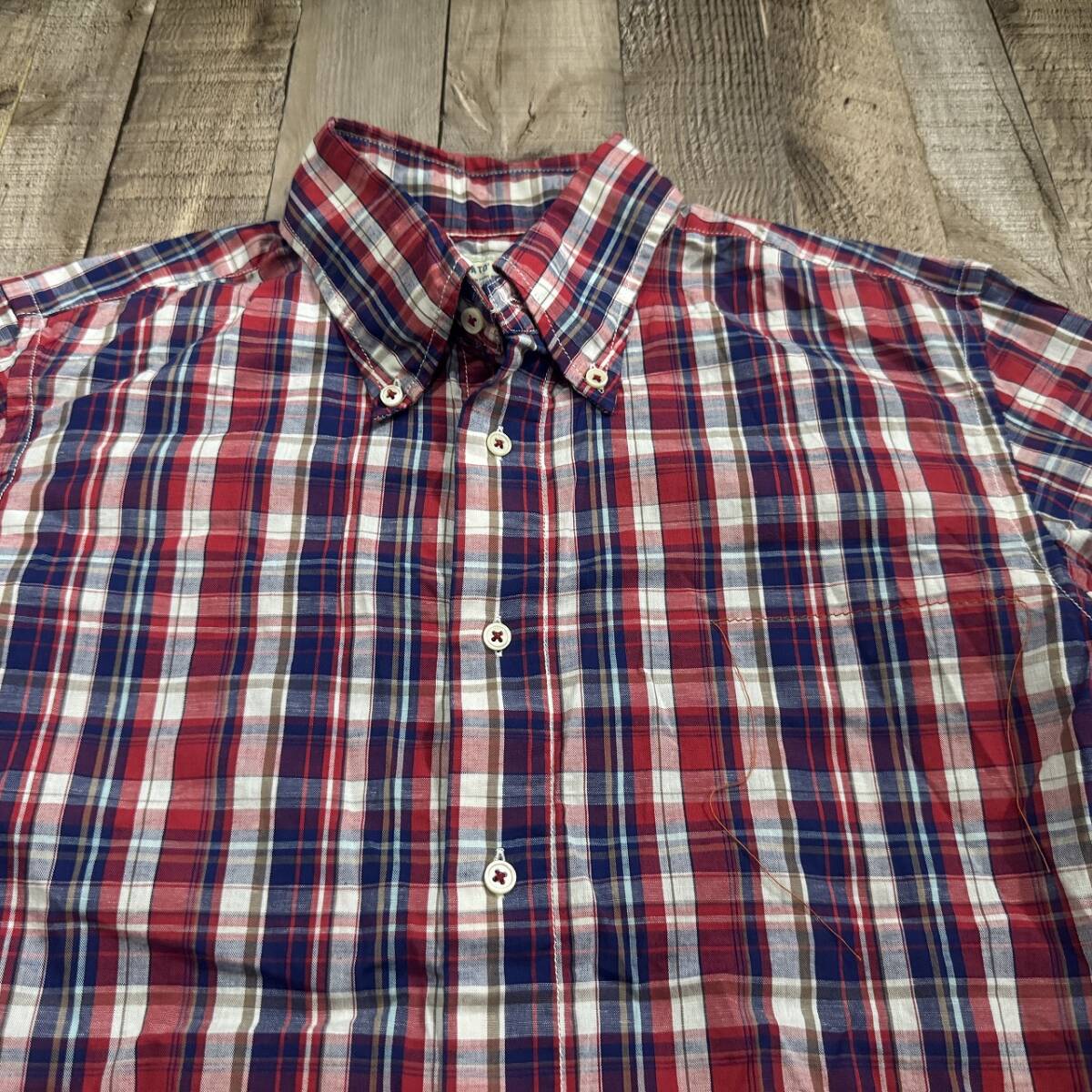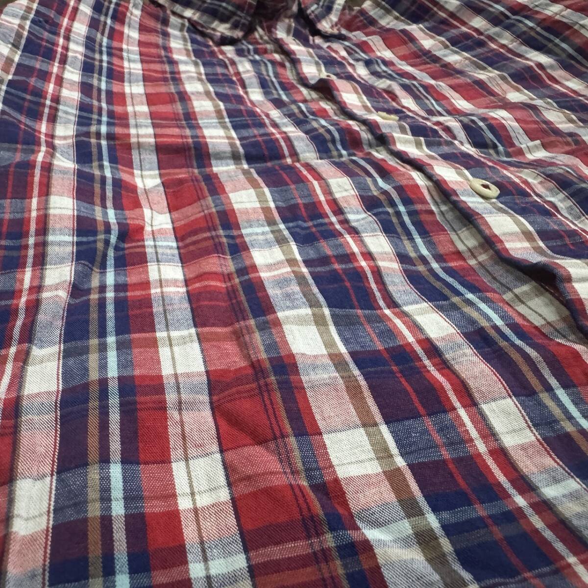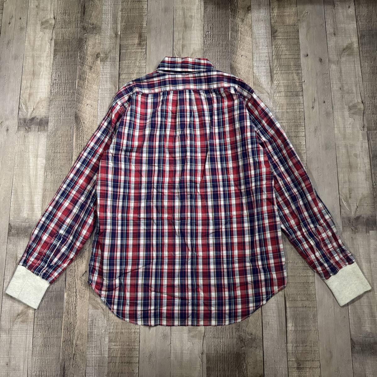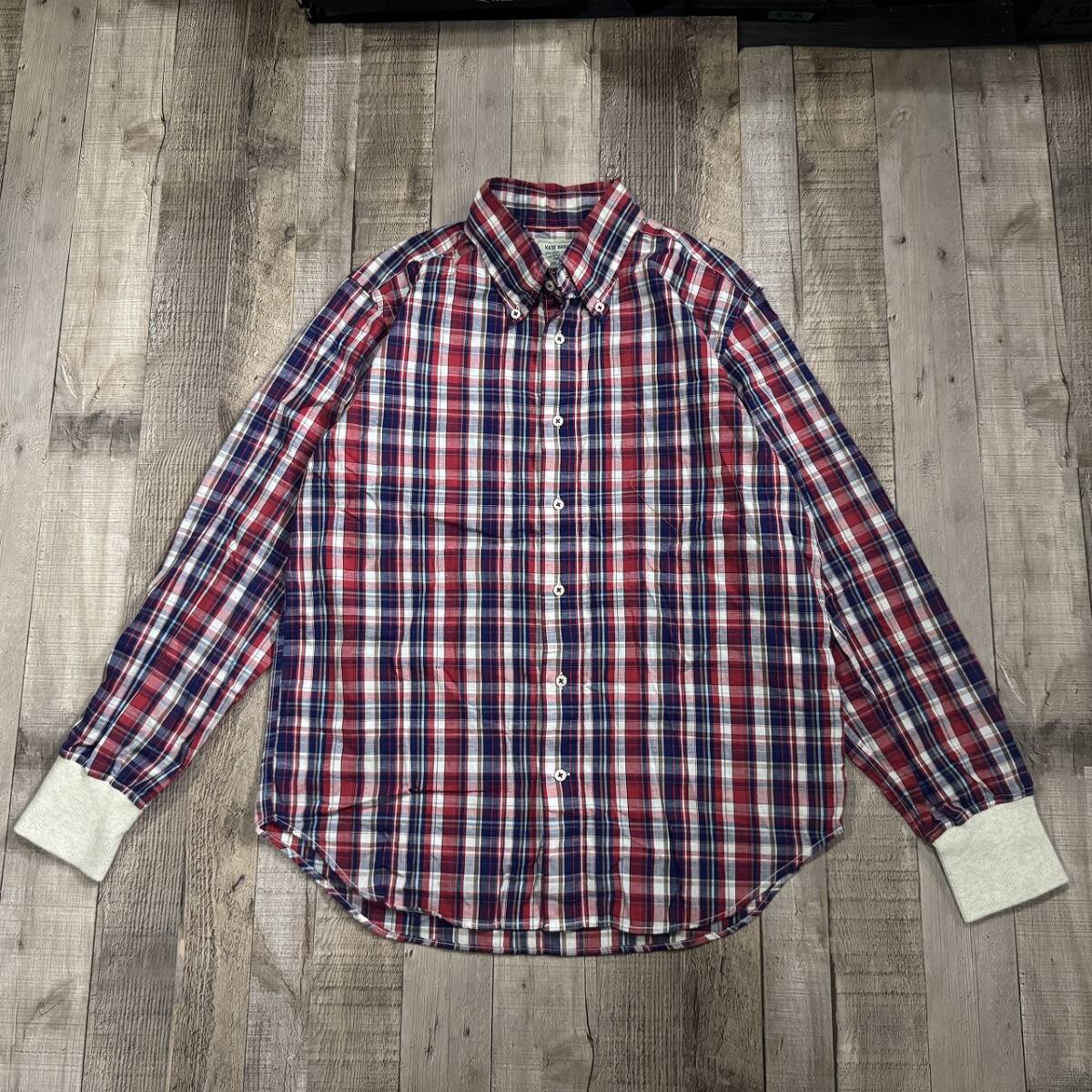 即決・クリックポスト発送・KATO' BASICの袖口がリブ仕様のボタンダウンシャツ・赤系・M