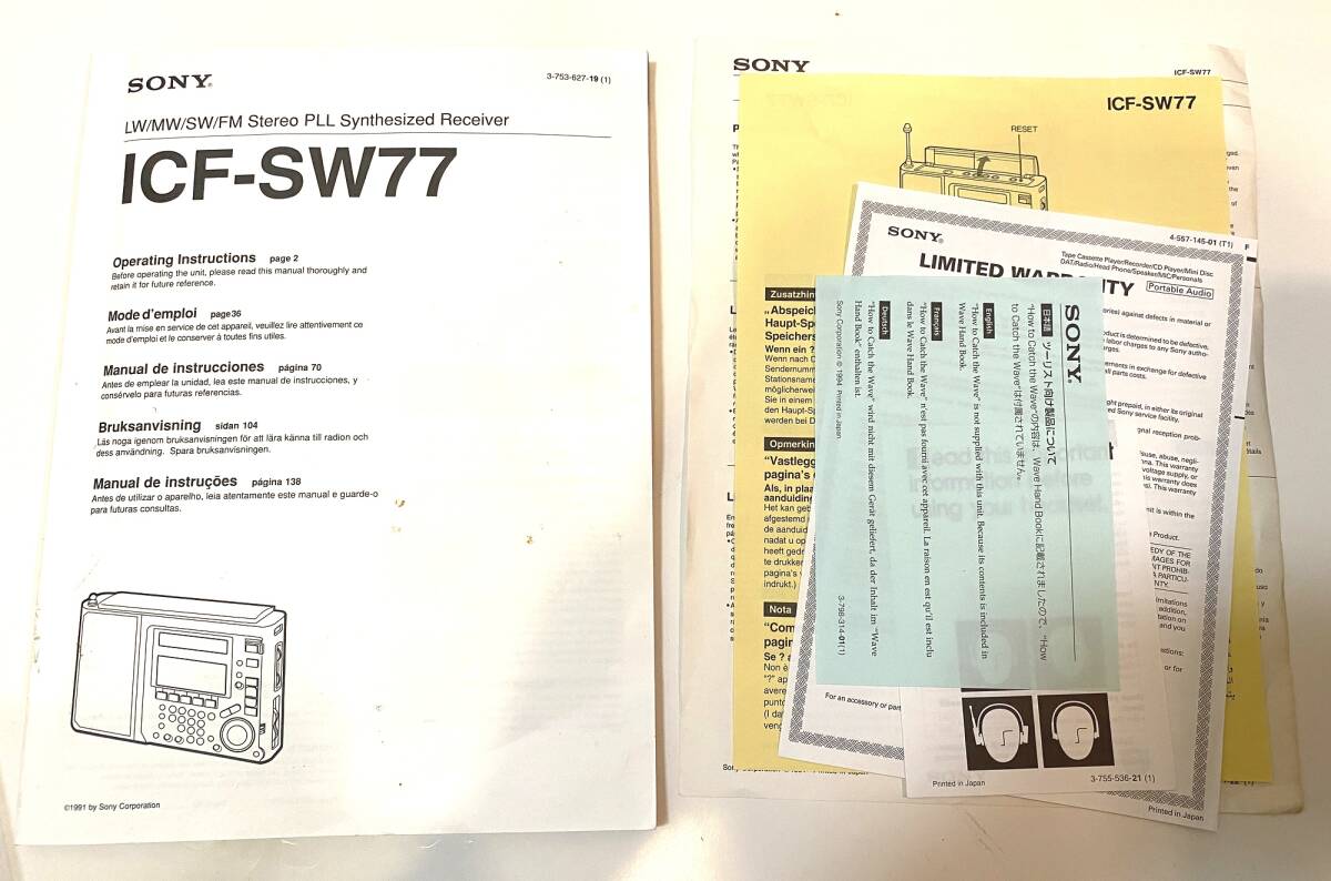 | ソニー SONY ICF-SW77 FM/長波/中波/短波ラジオ 整備済み品 中古動作品 元箱・取扱説明書・付属品付き シリアル番号35433 | ||