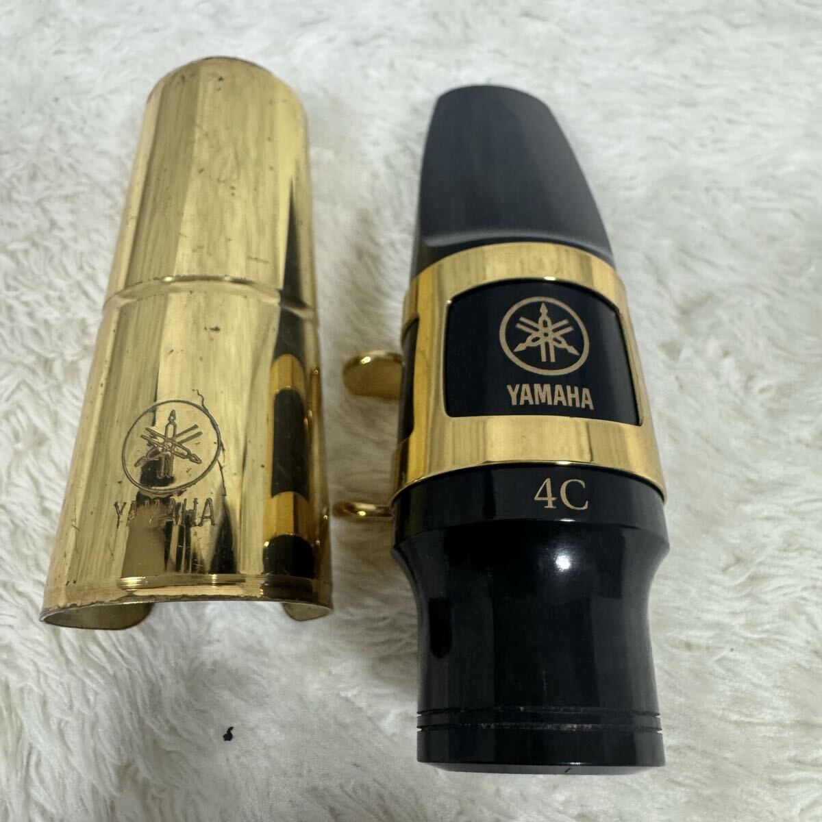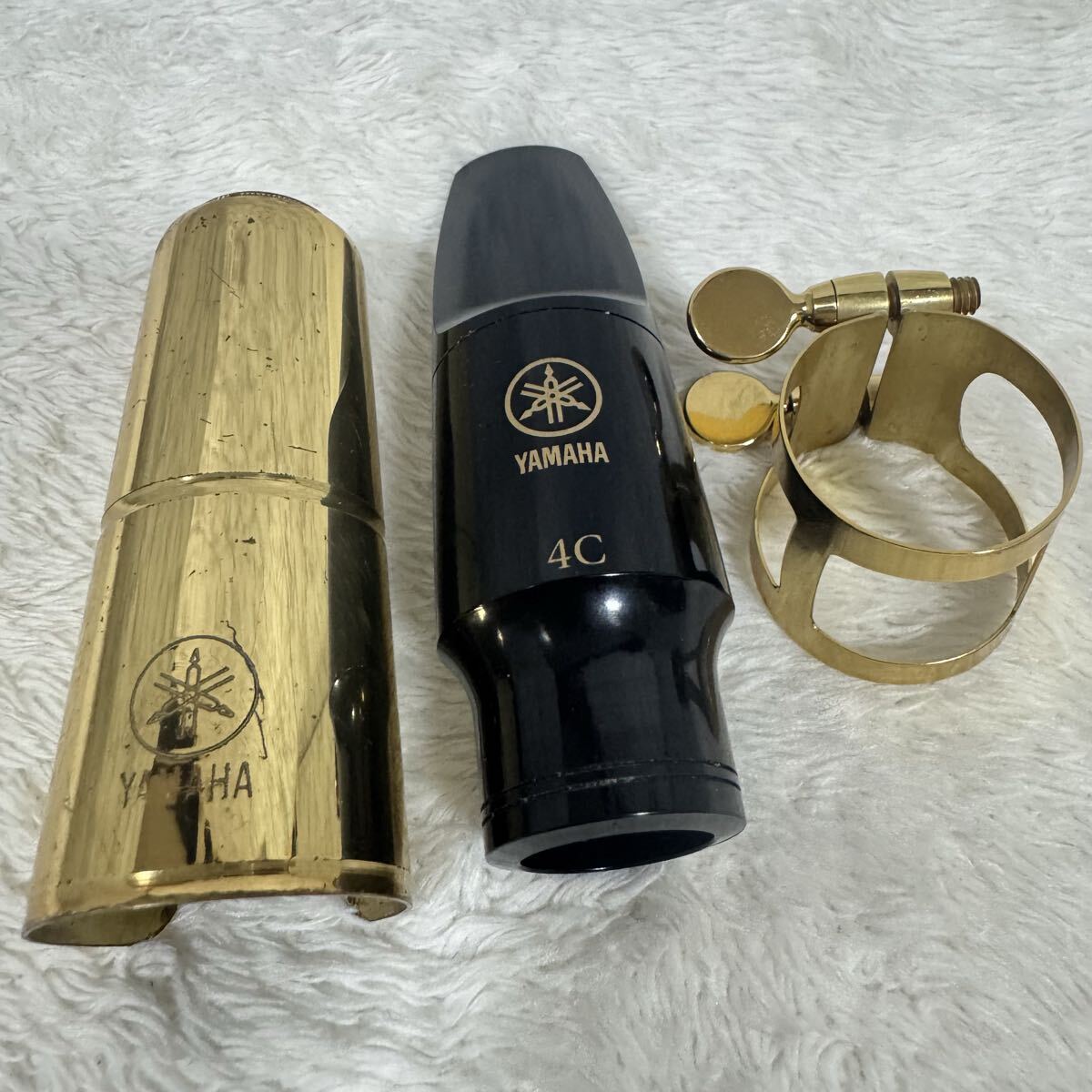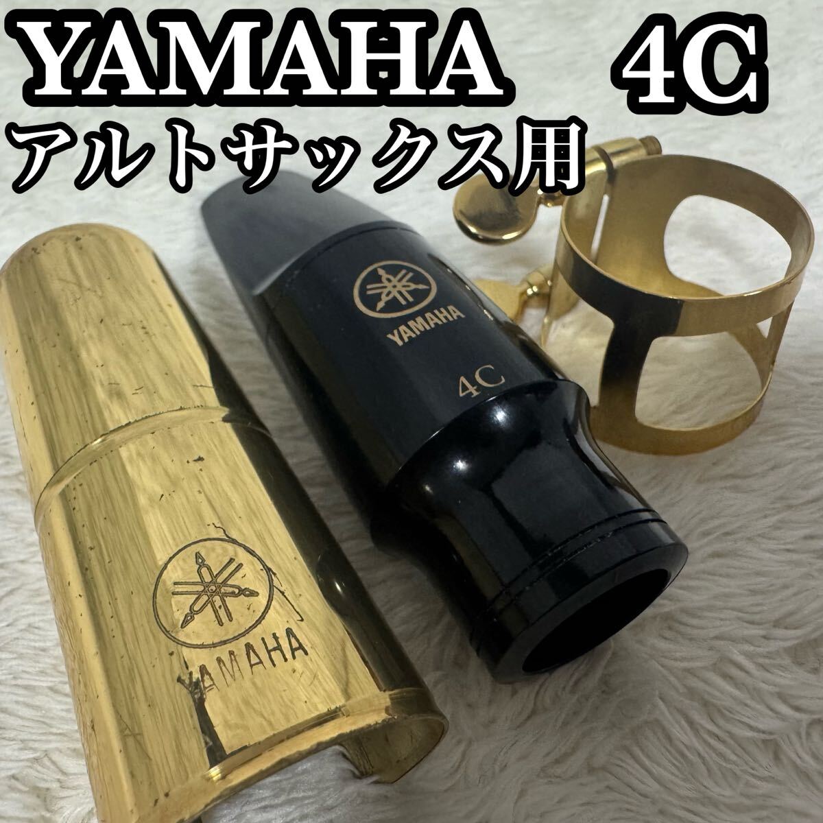 【YAMAHA ヤマハ アルトサックス マウスピース 4C リガチャー キャップ 3点セット ゴールド】