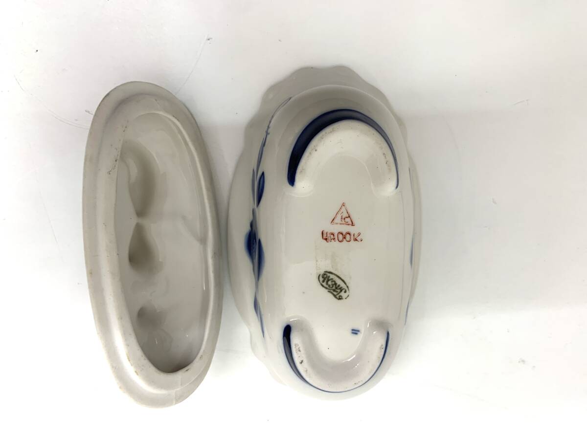 M208 ロシア グジェリ焼 旧ソ連時代 蓋付小物入れ 陶器 ヴィンテージ 動物