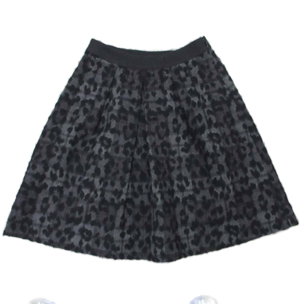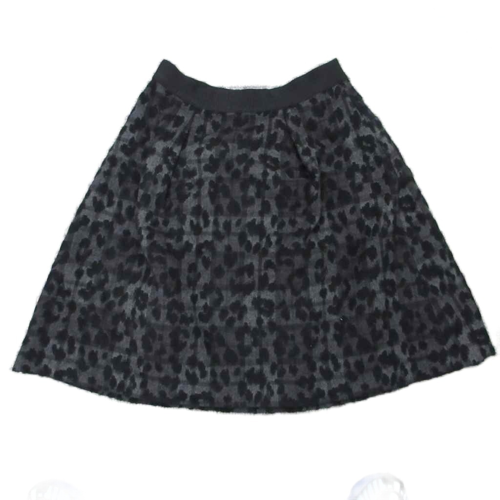 アナイ ANAYI フレアスカート ひざ丈 レオパード柄 ウエストゴム 黒 ブラック 38 約M ■YHS4 レディース
