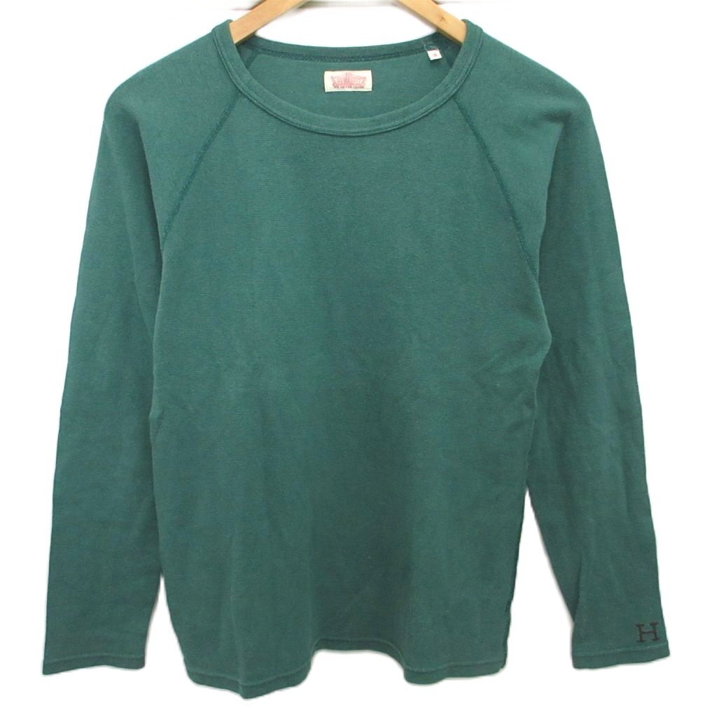 ハリウッドランチマーケット HOLLYWOOD RANCH MARKET ロンT Tシャツ カットソー 長袖 ラグラン ロゴ刺繍 3 緑 グリーン ■YHS4 メンズ