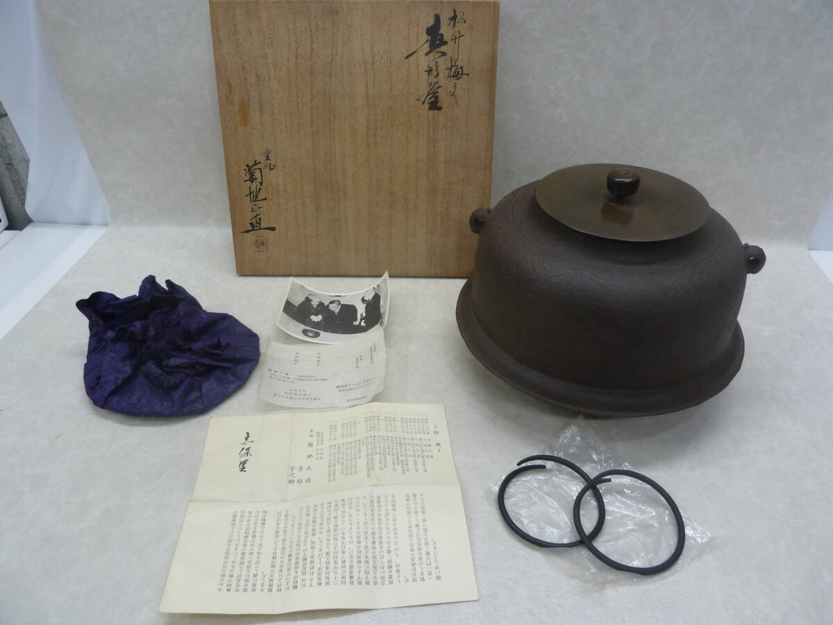 #43745 釜師 菊地正直造 松竹梅 真形釜 茶釜 鉄釜 共箱 説明書付き 【サイズ】 口径:約14㎝ 高さ(蓋含む):約20.5㎝ 直径:約24㎝ ※素人採寸ですので、誤差はご了承お願いいたします。 ◎こちらは譲渡品の為、詳細は不明です。 ◎中古・経年保管品です。 ◎長期保管によるスレ、サビ、変色はございます。 ◎共箱付です。小傷、汚れがございます。 ◎状態等画像でもご確認お願いいたします。 ・あくまでも説明は当方の主観です。一度人の手に渡った物の為、小傷や多少の汚れがあります。状態や詳細は写真にてご判断ご確認くださいませ。 ・出来る限り現物に近い状態の写真を撮影しておりますが、 色味などに若干の相違がある場合もございます。 ・当方、専門家ではないため、説明が簡単になっています。 こちら譲渡品の為、詳しい事は分かりかねますのでノークレーム・ノーリターンにてご判断・ご入札をお願い致します。 ・一度人の手に渡った品である事をご了承の上、細部まで気にされる方や、神経質な方のご入札はご遠慮願います。 ・複数の商品をご落札頂いた場合、同梱が可能な商品でもまとめて取引ではなく、個々にお取引をお願いする場合がございます。ご了承くださいませ。 ※いたずら入札防止のため新規IDの方・評価3以下の方はご入札前に質問欄よりご入札の意思確認をお願いいたします。ご連絡がない場合はこちらで削除させていただきます、ご了承くださいませ。 ---------------------------------------------------- 他、商品に関しまして写真をご参照下さい。 写真に写っているものが全てです。 |