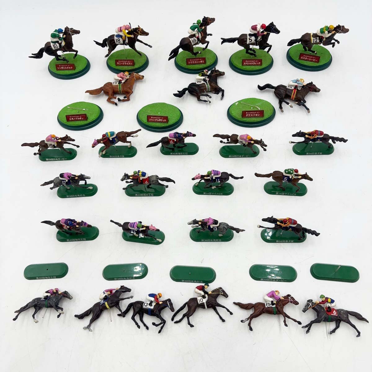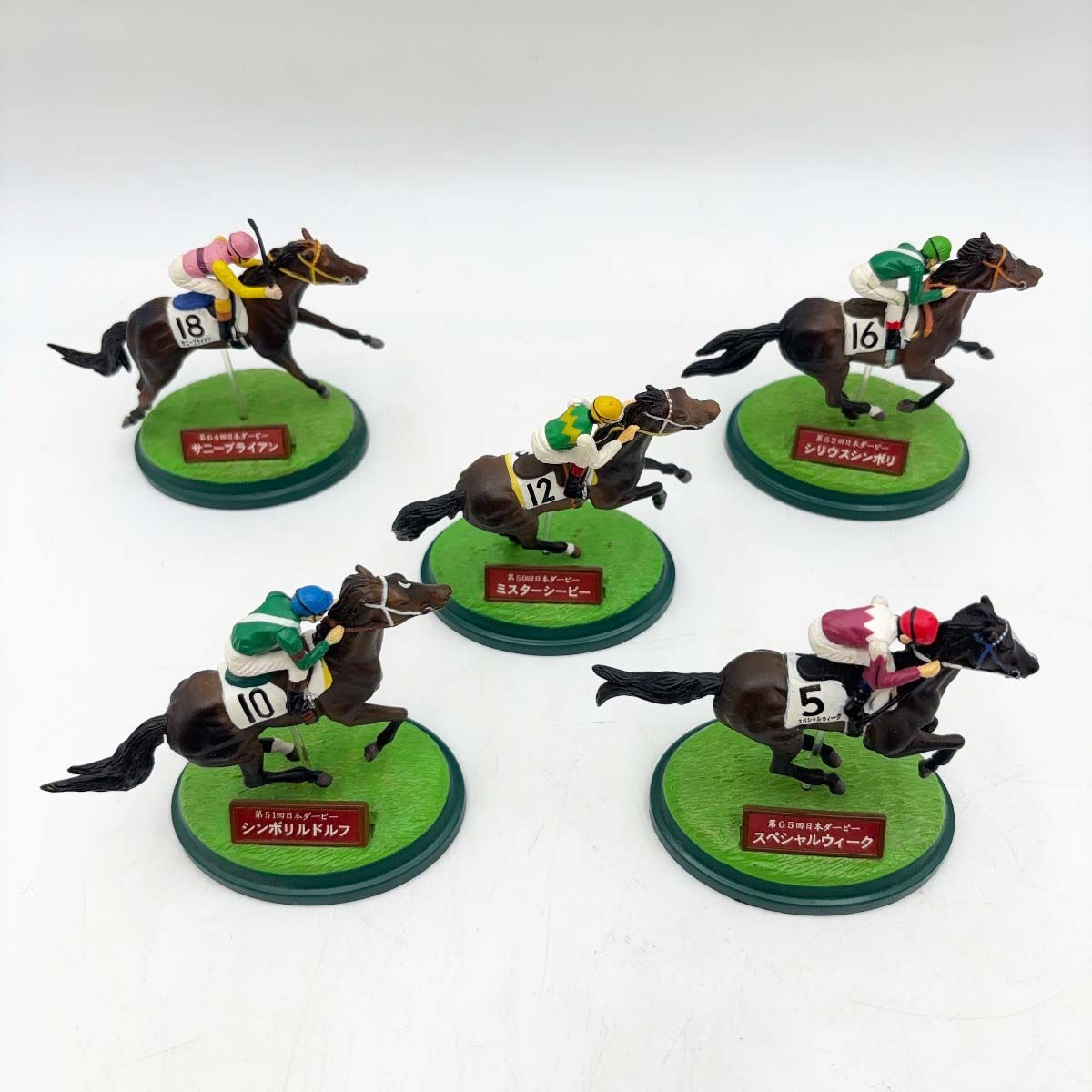 ※商品は画像にあるものがすべてとなります。 【仕様】 タイプ:Meiji 名馬伝説 競馬 フィギュア 栄光のダービー ミホノブルボン ミスターシービー タヤスツヨシ ジャングルポケット 他 |