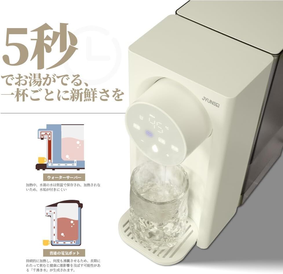 JYUNSEI ウォーターサーバー 瞬間給湯電気ポット 省エネ 5秒でお湯がでる 3L大容量 浄水型 ウォーターサーバー 電気ポット 温度調整 3 段水量設定 卓上ウォーターサーバー 空焚き防止 家庭 キッチン オフィス用