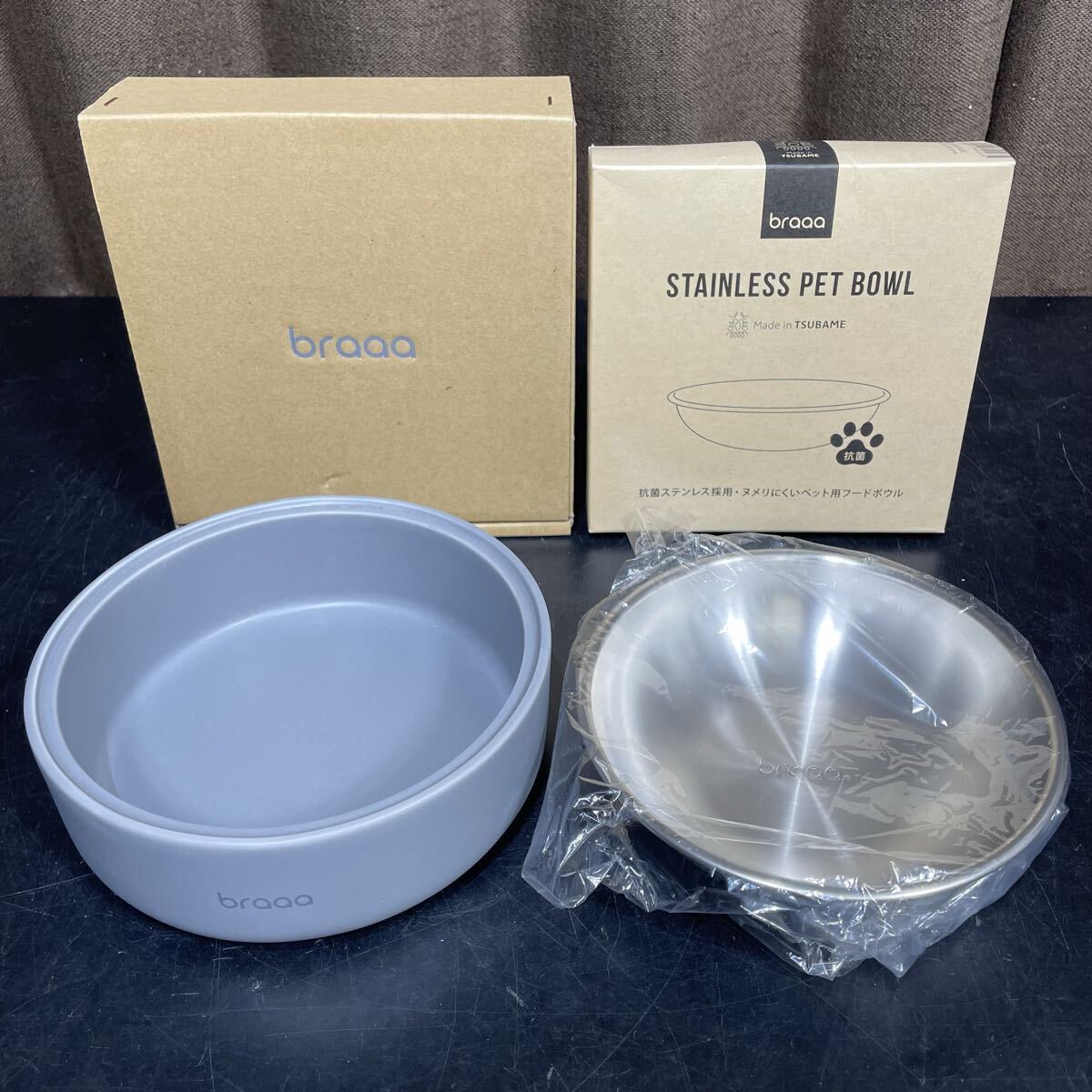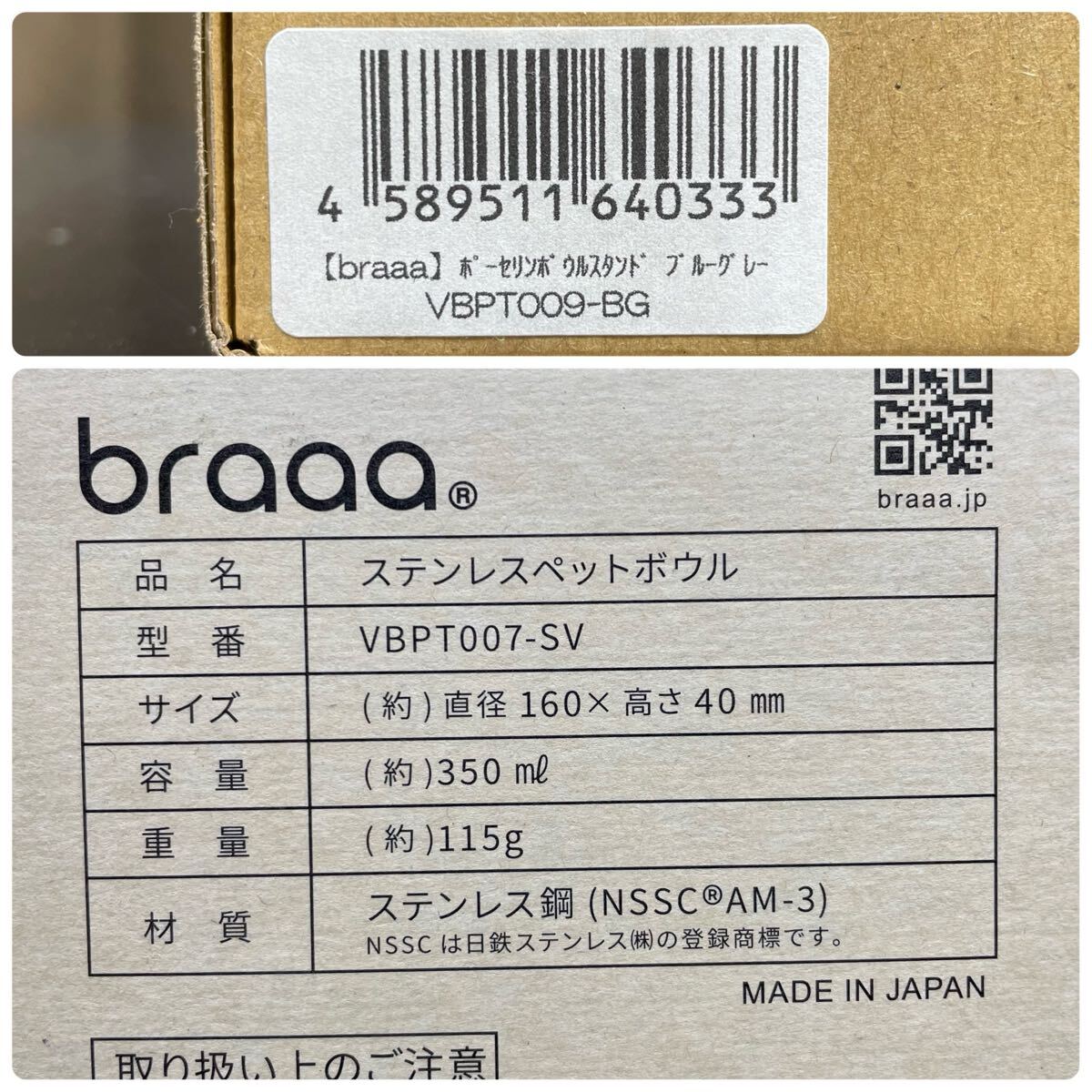 ☆未使用品☆ braaa/ブラー ボーセリンボウルスタンド VBPT009-BG/ステンレスペットボウル VBPT007-SV 2点セット ペット用品